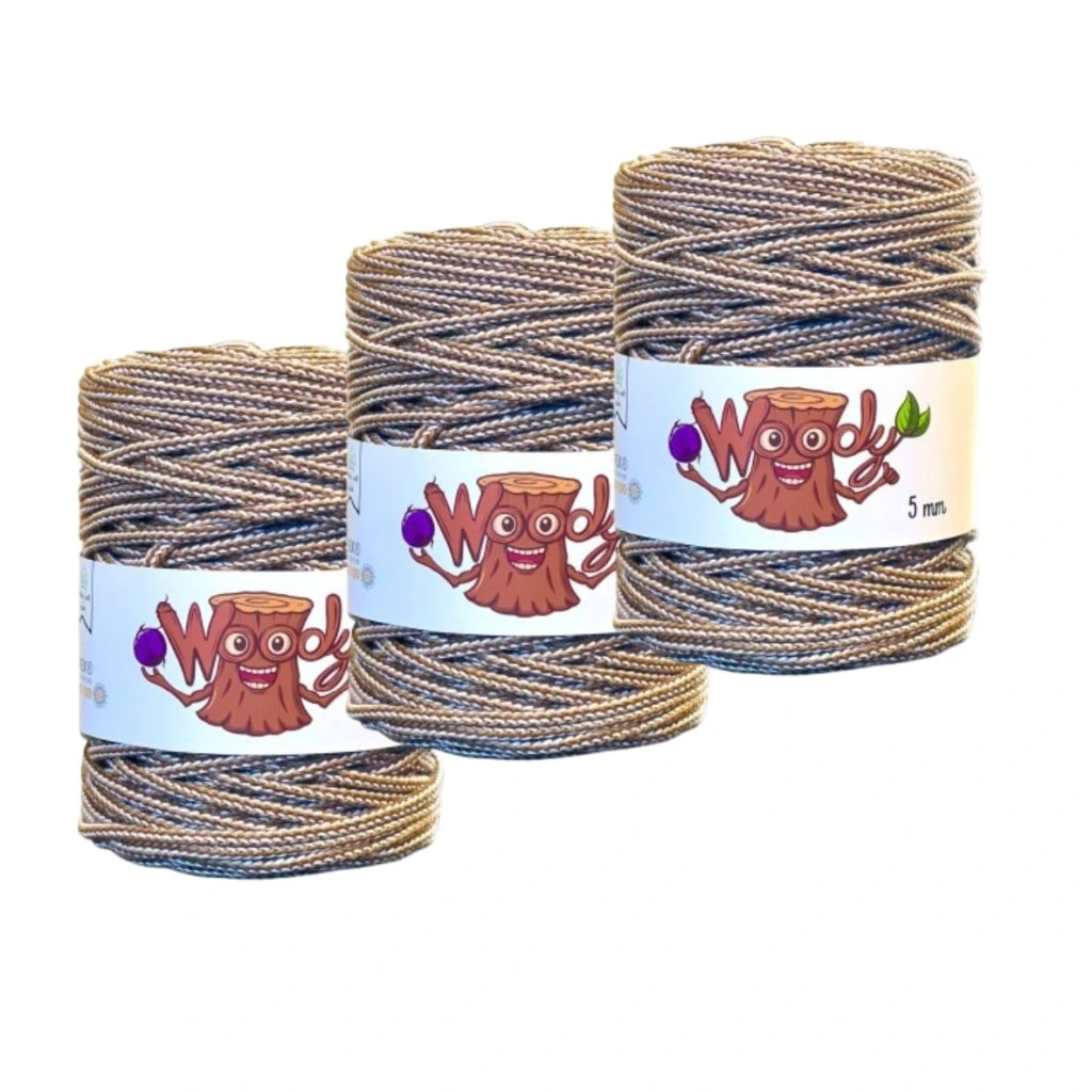 Příze Woody je ideální volbou pro všechny, kdo hledají ekologicky šetrné a zároveň kvalitní materiály pro své ruční práce. Tato příze je vyrobena ze 100% recyklovaného bavlněného opletu, který zajišťuje měkkost a příjemný pocit při práci i při používání hotových výrobků. Vnitřní polyesterové (PES) jádro dodává přízi potřebnou pevnost a odolnost, takže vaše výrobky budou nejen krásné, ale i trvanlivé.