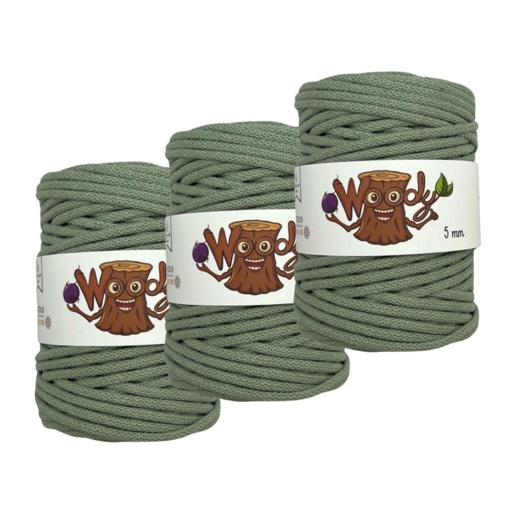Příze Woody má 100% recyklovaný bavlněný oplet a je vyplněn polyesterovým (PES) jádrem. Vaše výrobky tak budou pevné a jemné zároveň.