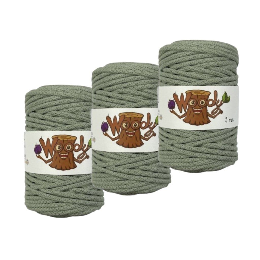 Příze Woody má 100% recyklovaný bavlněný oplet a je vyplněn polyesterovým (PES) jádrem. Vaše výrobky tak budou pevné a jemné zároveň.