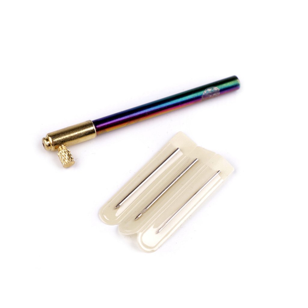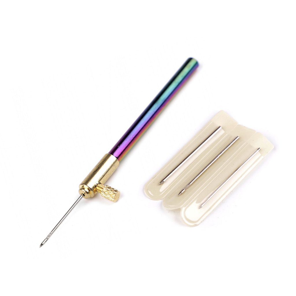 Sada obsahuje kovovou rukojeť a tři jehly o tloušťce háčku 0,8 mm, 0,9 mm a 1,1 mm.