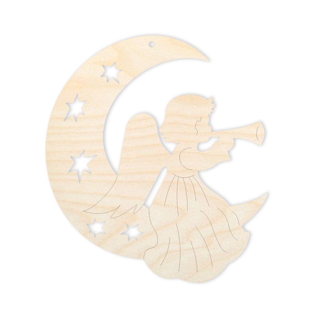 Anděl na měsíčku s trubkou - ozdoba na vánoční stromek