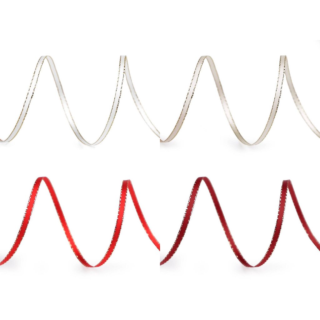 Atlasová stuha oboulící s lurexovým okrajem šíře 3 mm vánoční