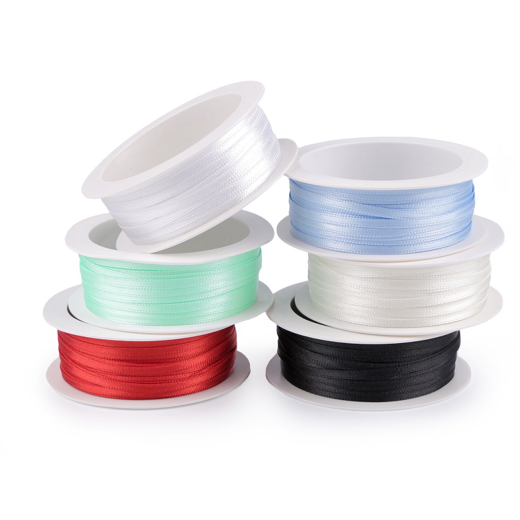Oboulící atlasová stuha je kvalitní, pevná s jemným leskem.