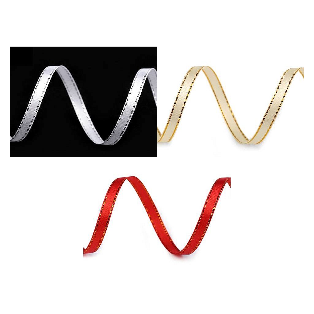 Atlasová stuha s lurexovým okrajem šíře 6 mm vánoční