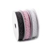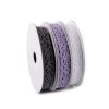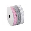 V jedné sadě jsou 3 cívky a na každé z nich je krajka s návinem 5 m. Celkem je tedy v jednom balení 15 m. Cena je za 1 cívku/1 ks.Na 1 cívce se může vyskytovat 1 prostřih.