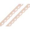 Pevná krajka je vyrobená z bavlny. Zdobí ji jemný paličkovaný vzor s drobnými očky.