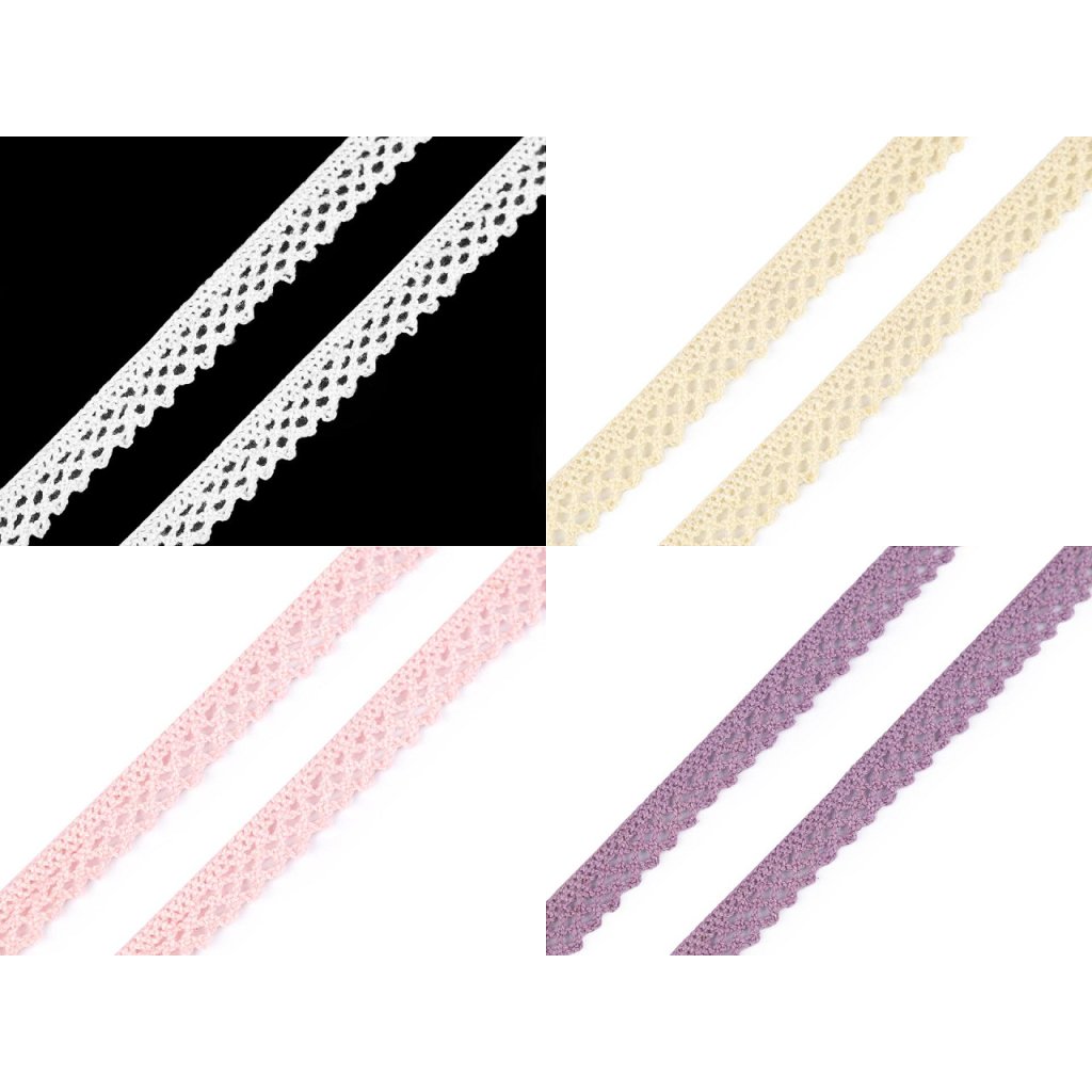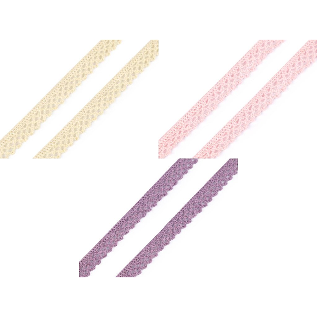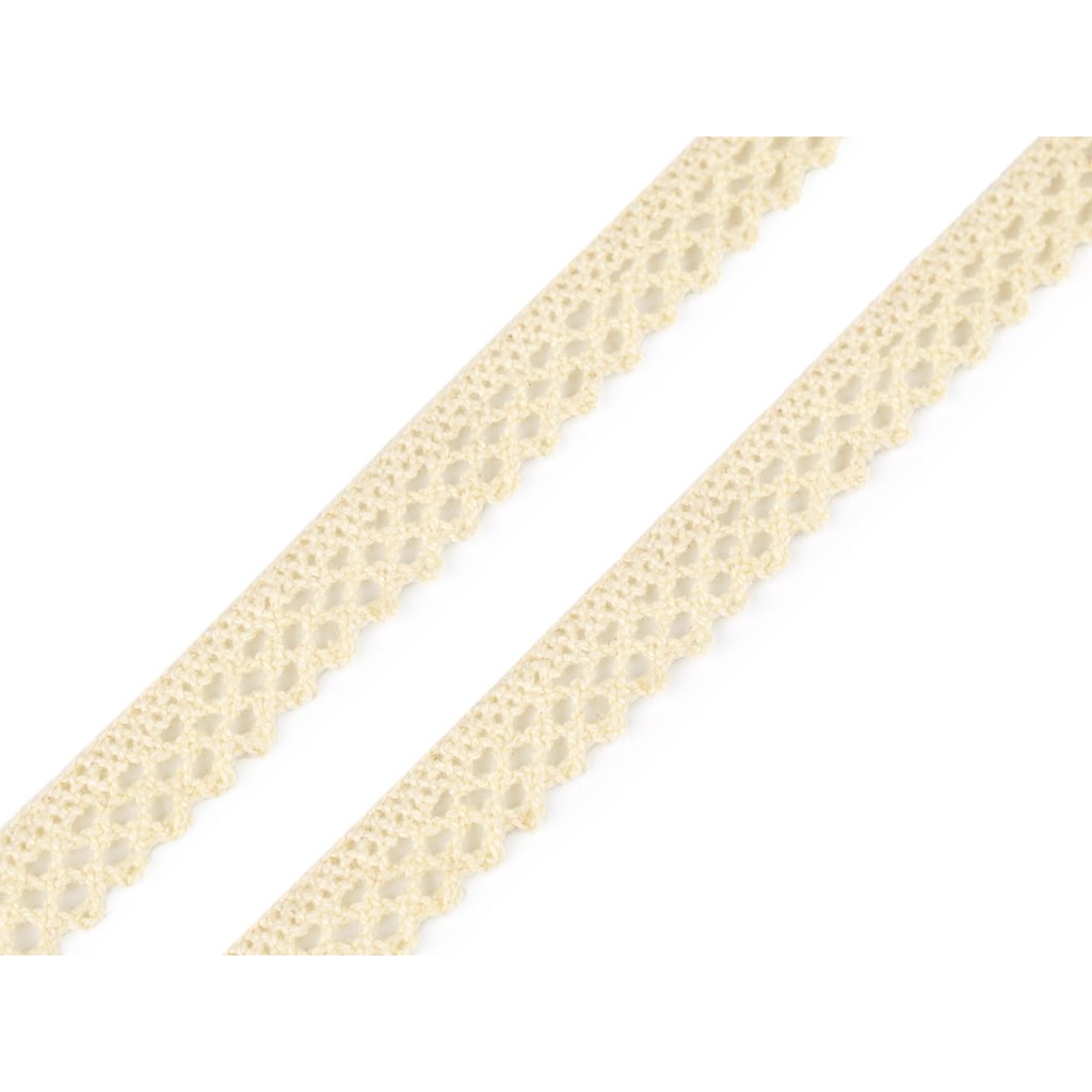 Paličkovaná krajka s jemnými obloučky, je vyrobená z bavlny. Z jedné strany je rovná. Doporučujeme ji žehlit přes tkaninu.