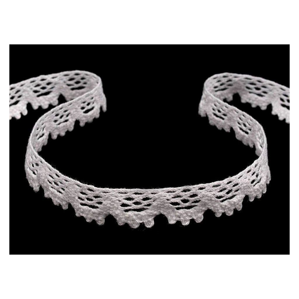 Bavlněná krajka je zajímavá svým originálním paličkovaným vzorem, který je z jedné strany zakončený zoubky.