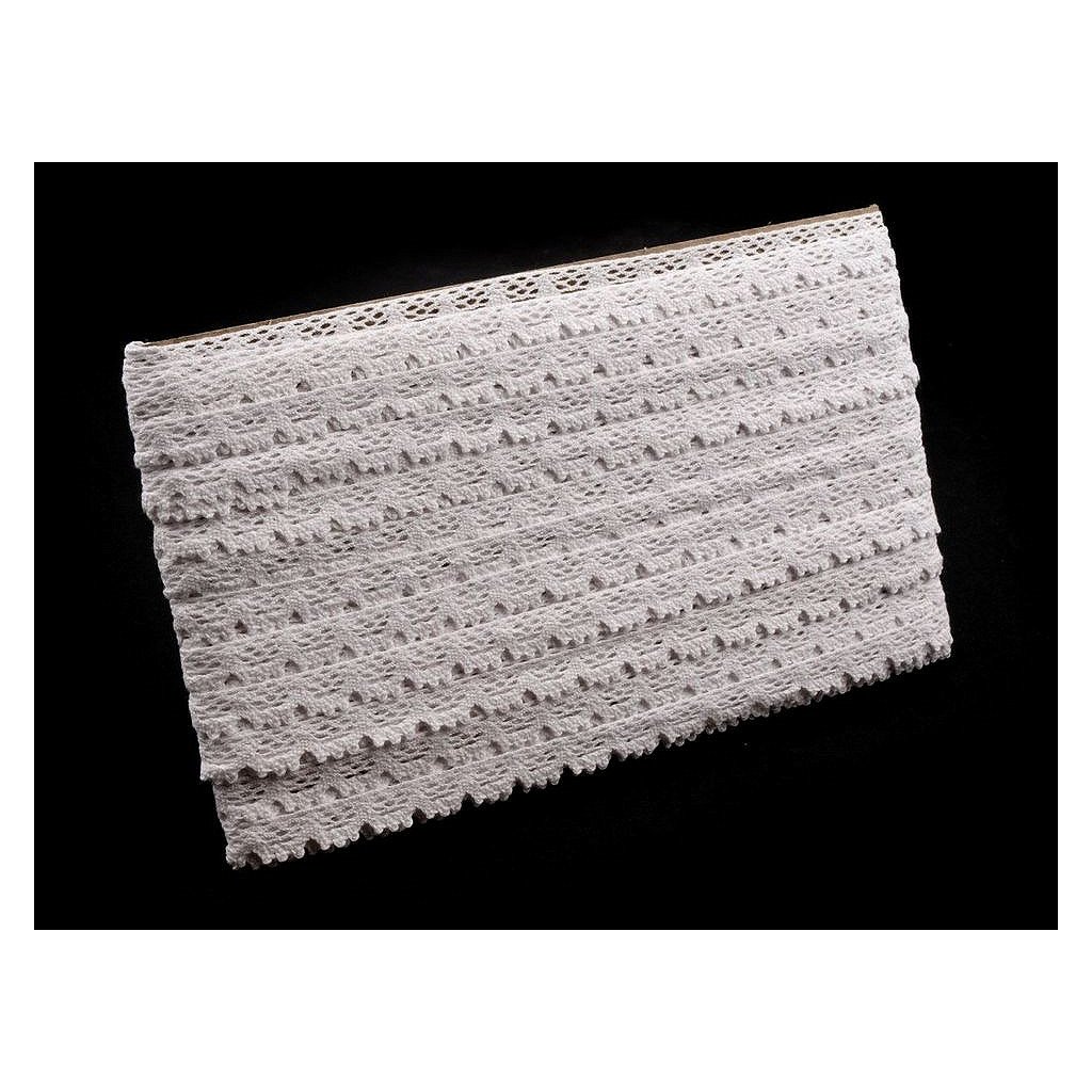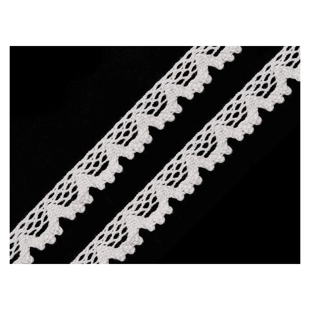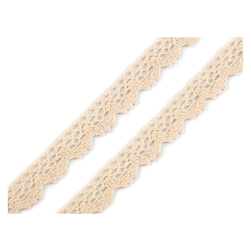 Bavlněná krajka je zajímavá svým originálním paličkovaným vzorem, který je z jedné strany zakončený zoubky.