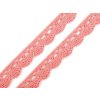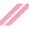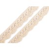 Paličkovaná krajka je vyrobena z bavlny. Vzor zakončený jemným vlněním dodává krajce romantický nádech. Doporučujeme ji žehlit přes tkaninu.