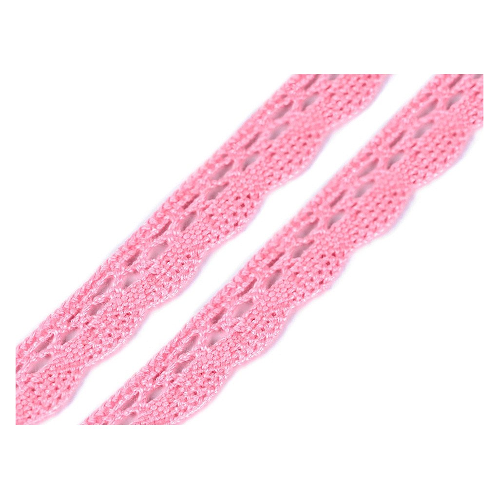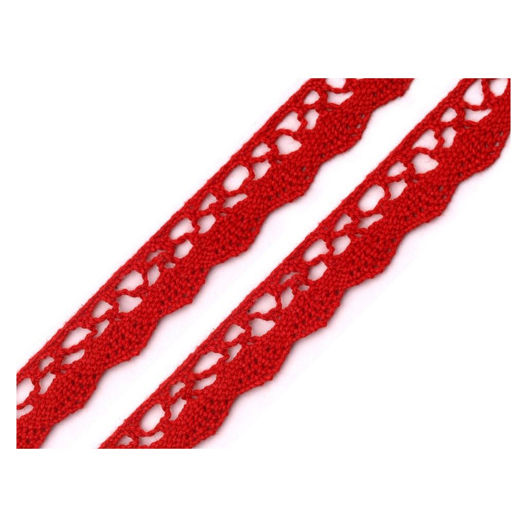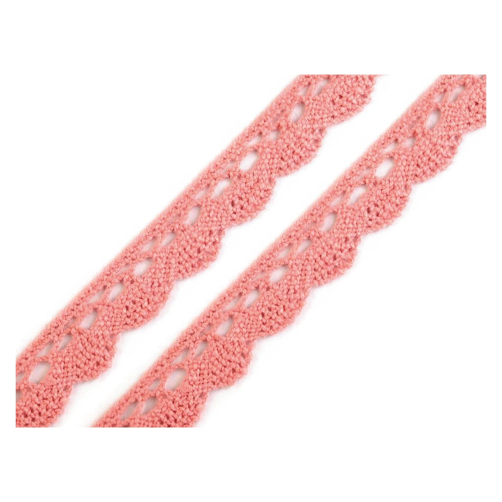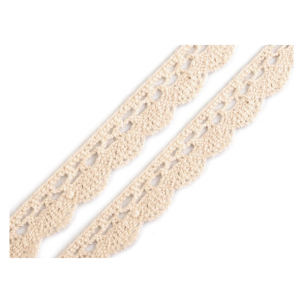 Paličkovaná krajka je vyrobena z bavlny. Vzor zakončený jemným vlněním dodává krajce romantický nádech. Doporučujeme ji žehlit přes tkaninu.