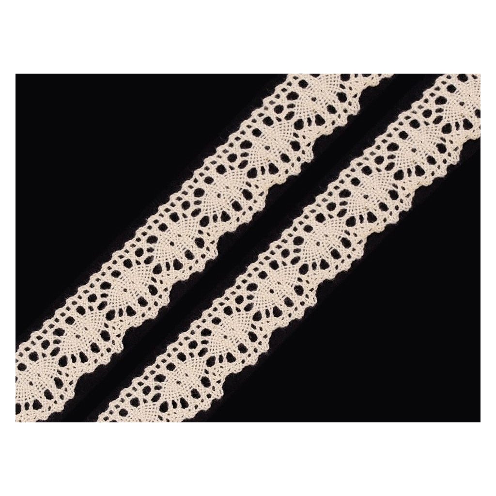 Bavlněná paličkovaná krajka je zdobena zajímavým vzorem. Doporučujeme ji žehlit přes tkaninu.