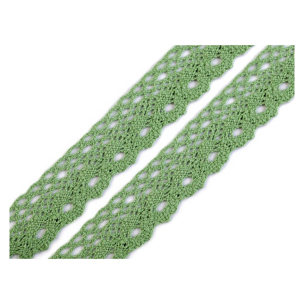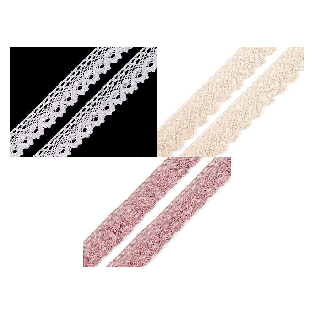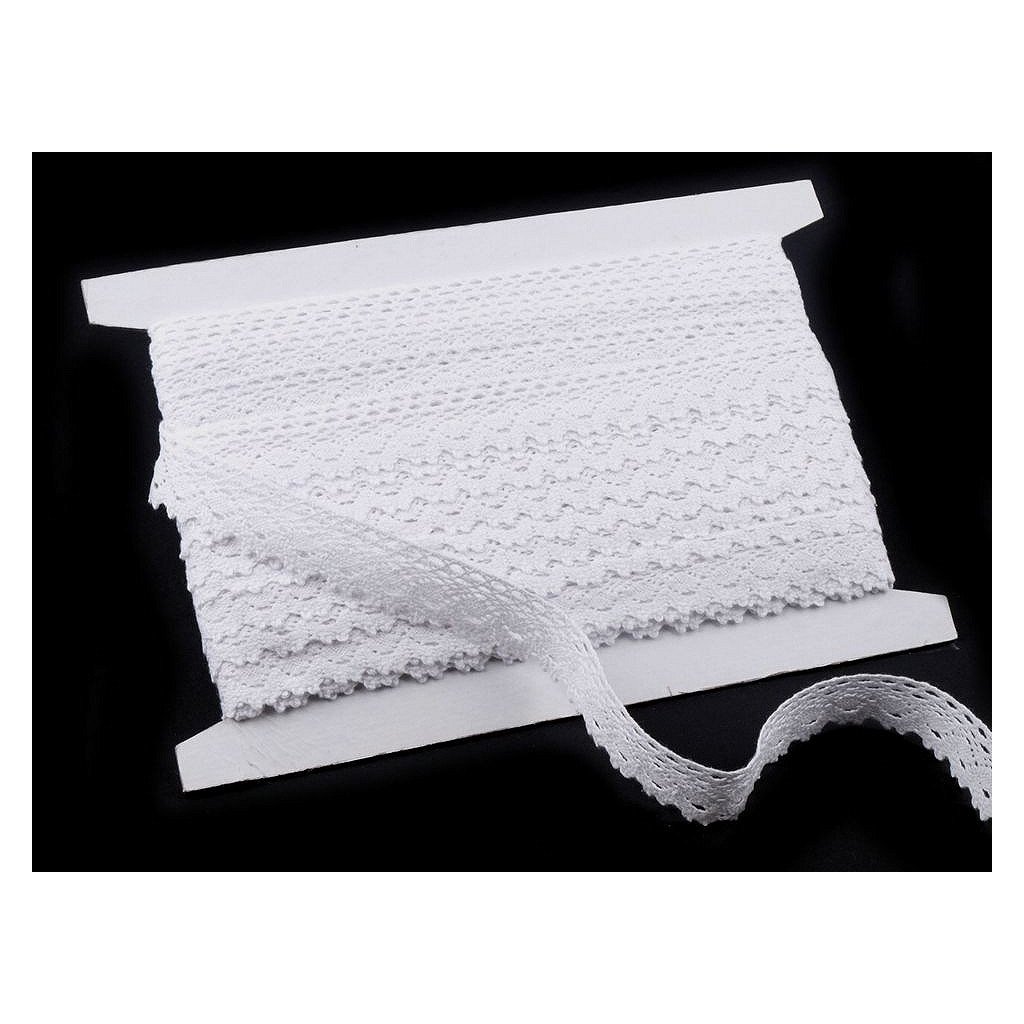Bavlněná paličkovaná krajka je v horní části zdobena malými očky a zakončuje ji esovitý vzor. Doporučujeme ji žehlit přes tkaninu.