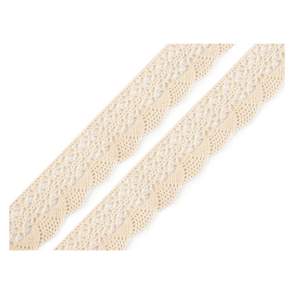 Bavlněná paličkovaná krajka má velmi originální vzor s vlnkovaným zakončením. Doporučujeme ji žehlit přes tkaninu.