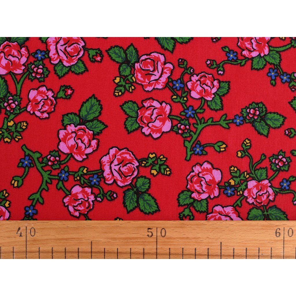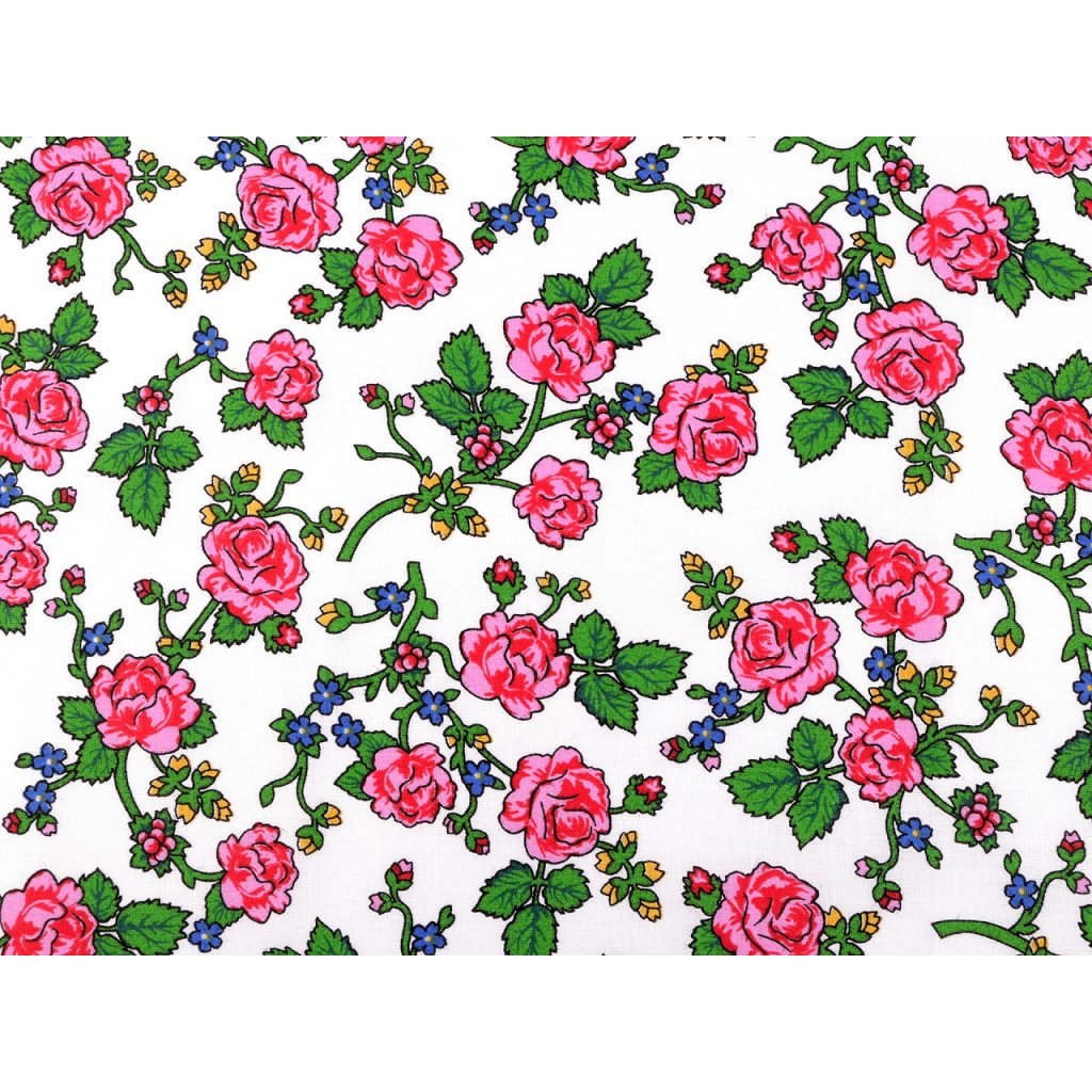 Bavlněnou látku s květy růží využijete na šití polštářů, povlečení, závěsů, ubrusů, tašek, pytlíků apod. Hodí se i na šití krojů.