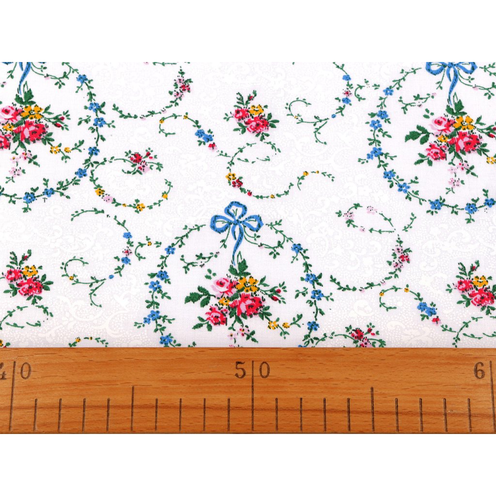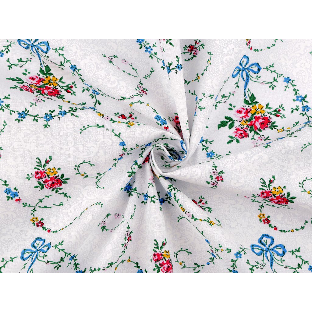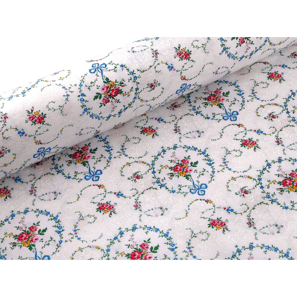 Bavlněné plátno s motivem květinových věnečků přinese do vašeho domova nádech útulnosti a tradičního stylu. Využijete ho na šití povlečení, polštářů, závěsů, ubrusů, tašek, pytlíků a různých bytových dekorací a doplňků.