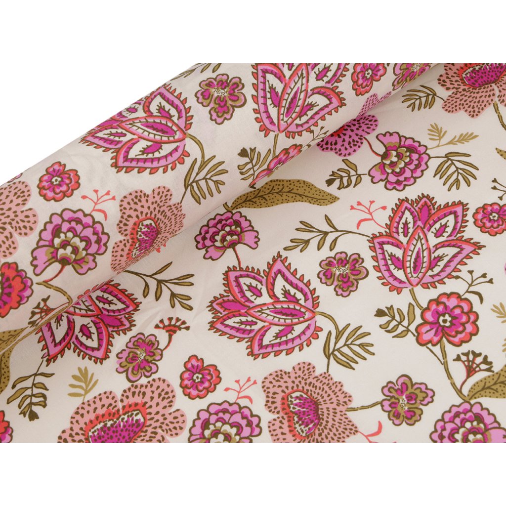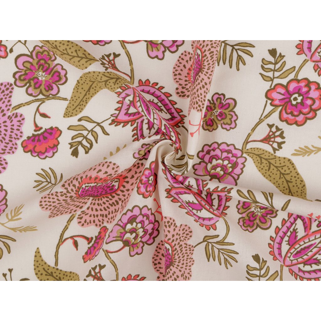 Bavlněná látka s květinovým vzorem je vhodná na šití polštářů, povlečení, závěsů, ubrusů, tašek, pytlíků a různých bytových dekorací.
