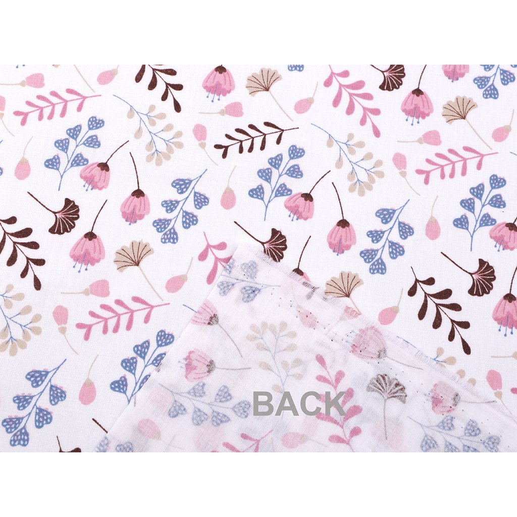 Bavlněnou látku s potiskem květů a listů využijete na šití polštářů, povlečení, závěsů, ubrusů, tašek, pytlíků apod.