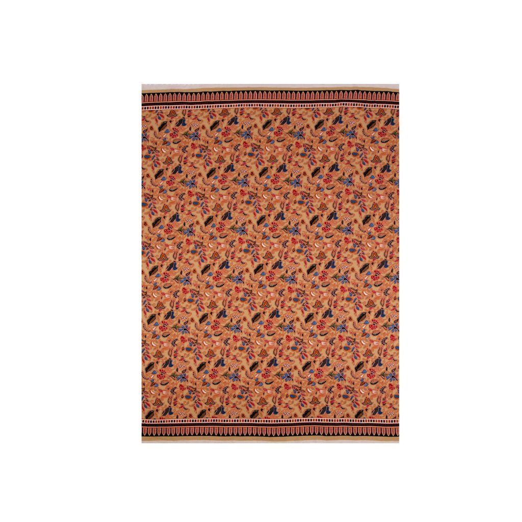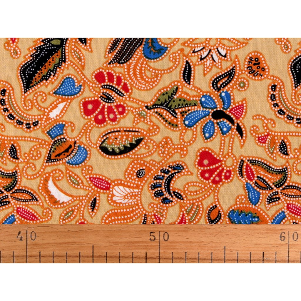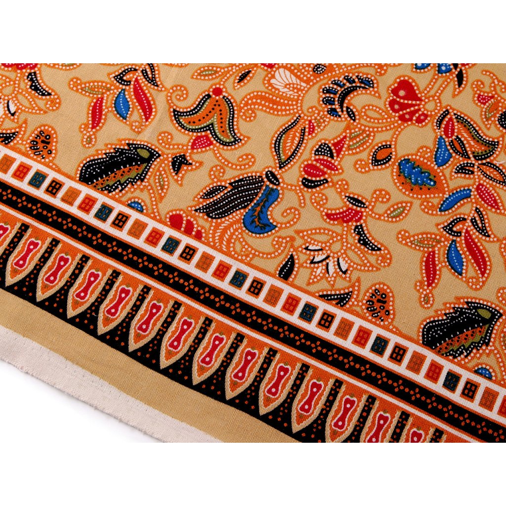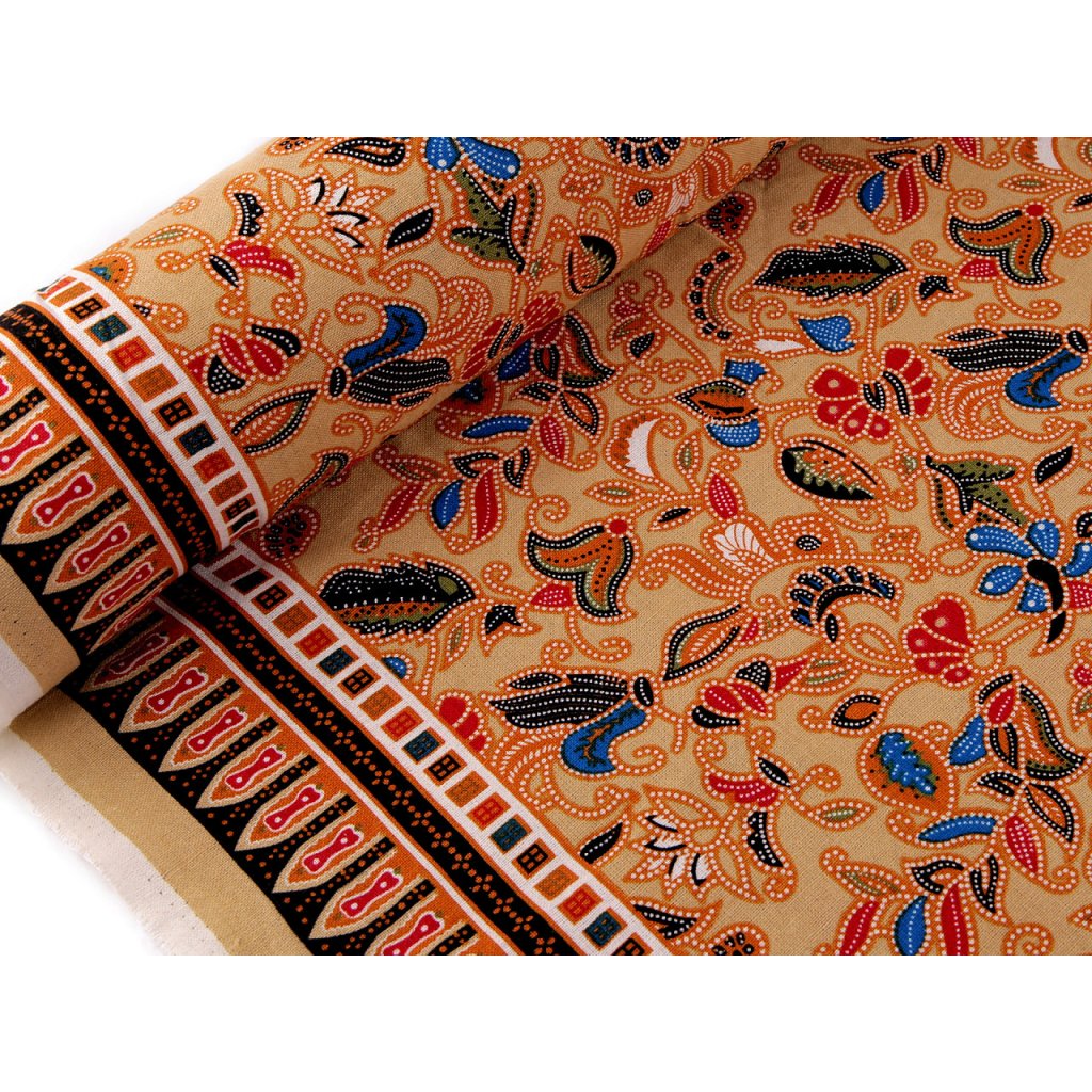 Bavlněná látka s orientálními motivy je vzdušná, vhodná na šití letního oblečení i bytových doplňků, jako jsou závěsy, ubrusy či polštáře. Po stranách má ozdobný lem, který je široký 7,5 cm.