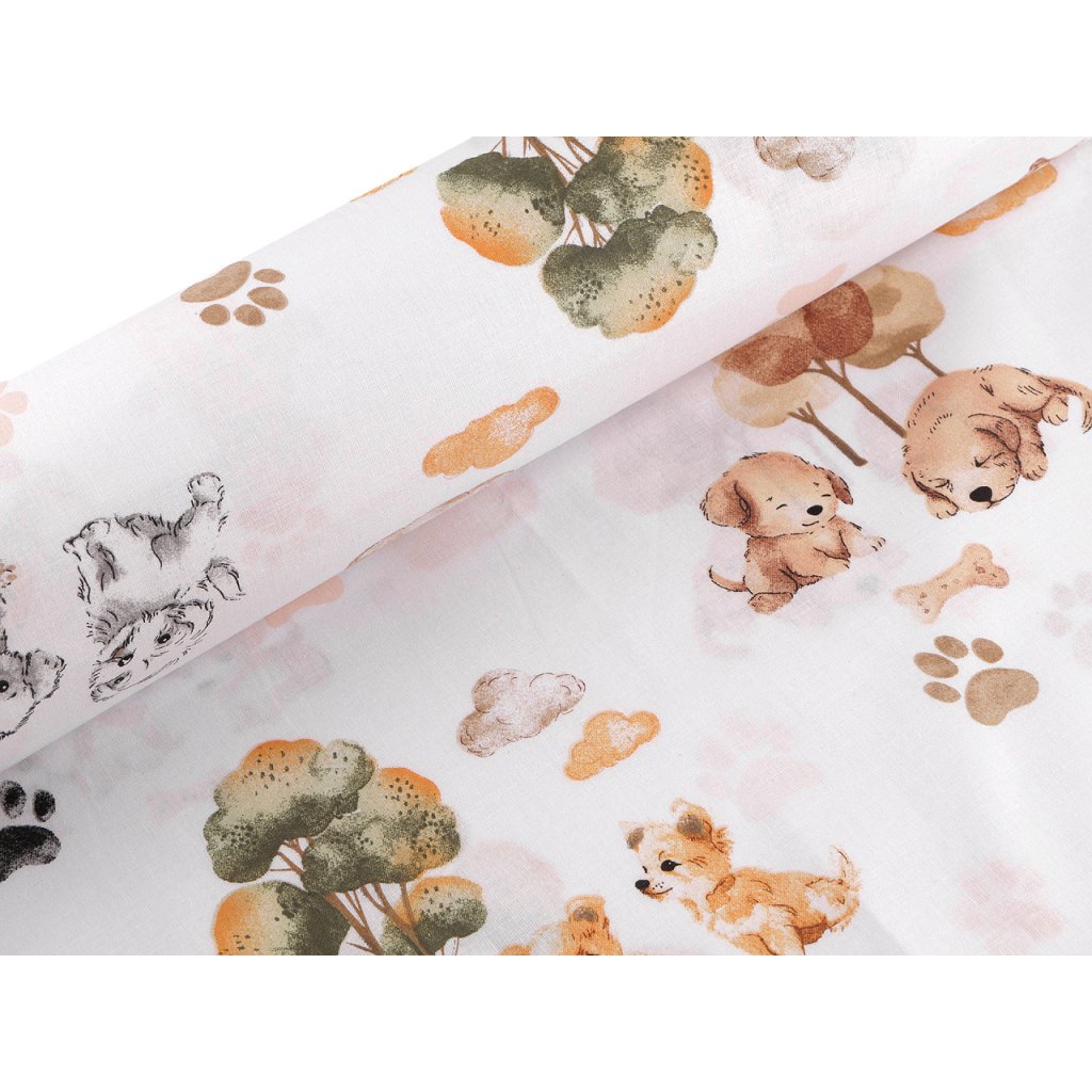 Bavlněná látka s roztomilými pejsky je vhodná na šití polštářů, dětského povlečení, závěsů, pytlíků, tašek nebo kapsářů. Vzor roztomilých pejsků přináší hravost, která se skvěle hodí pro dětské výrobky nebo dekorace.