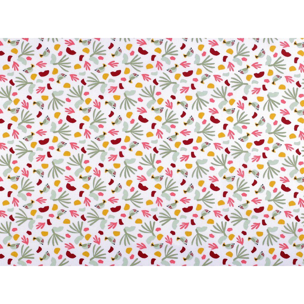Bavlněnou látku s designem drobných ptáčků využijete na šití polštářů, povlečení, závěsů, ubrusů, tašek, mantinelů do postýlek a dalších bytových doplňků.