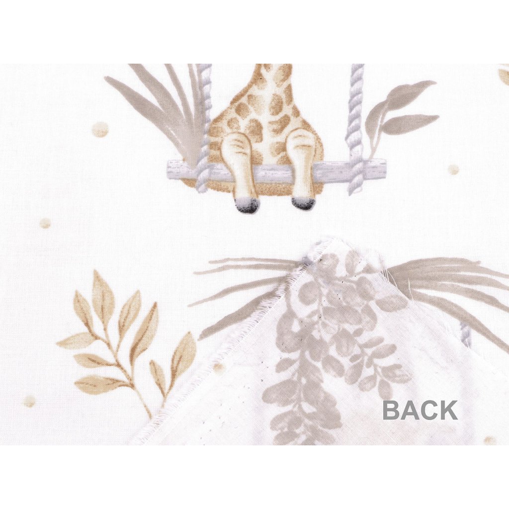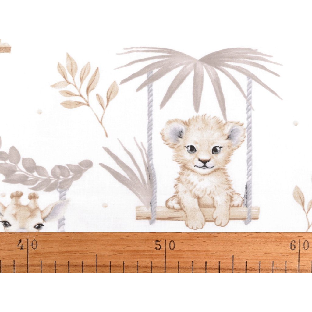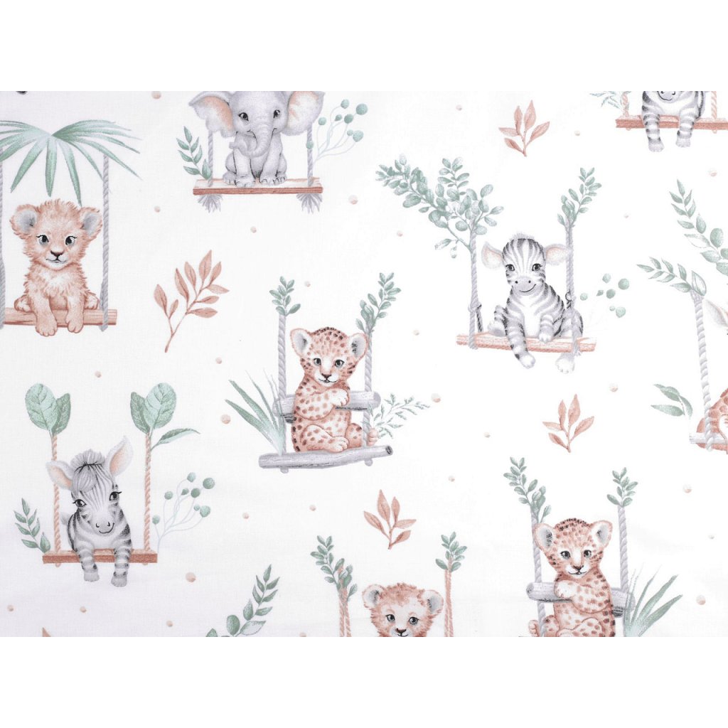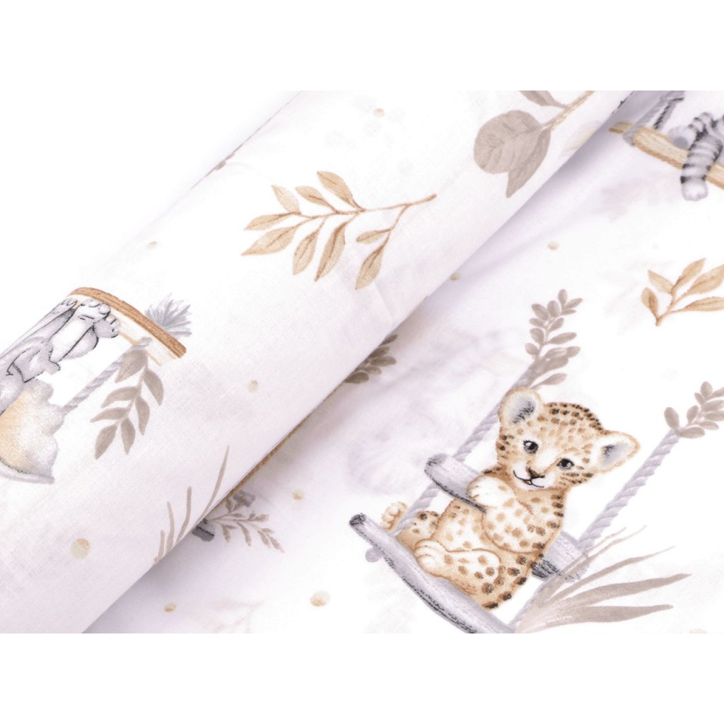 Bavlněné plátno zdobí potisk roztomilých zvířátek ze safari.