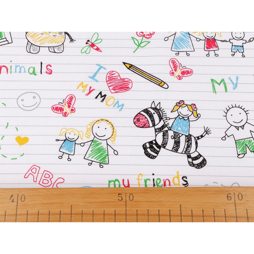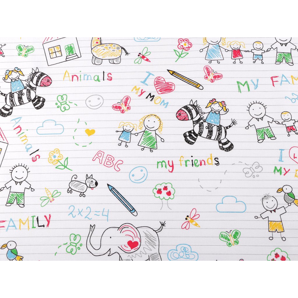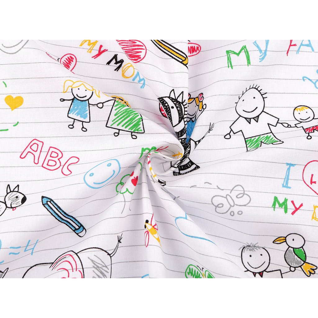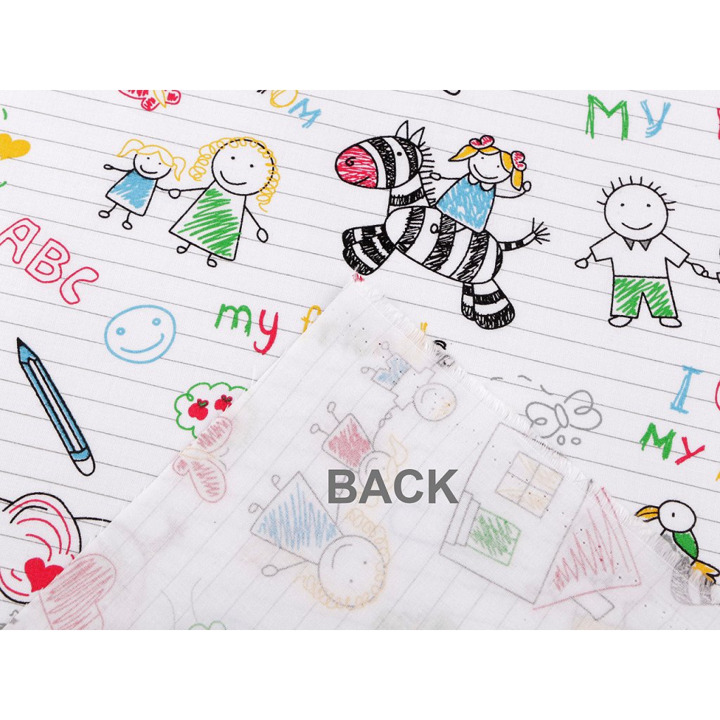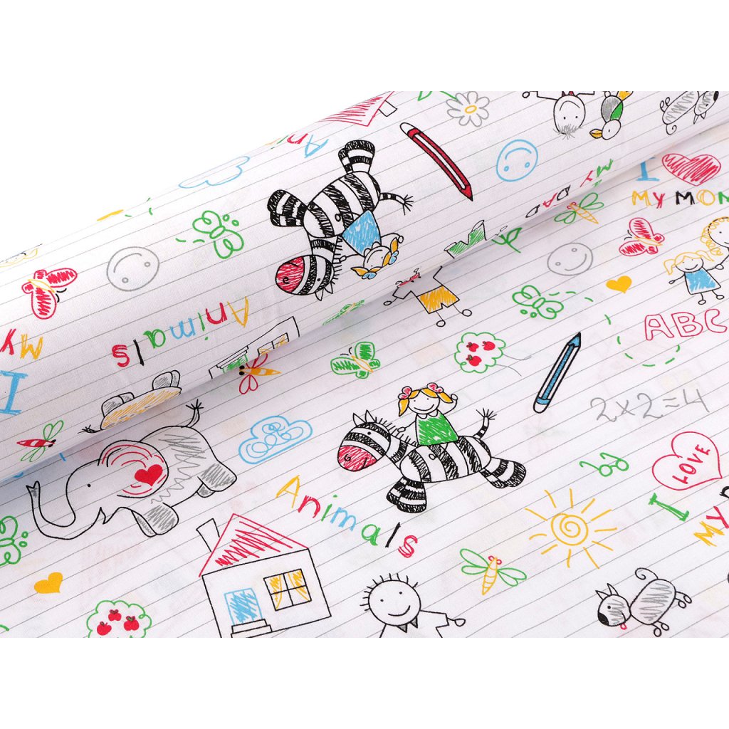 Bavlněná látka s motivem sešitu a omalovánek kombinuje praktické využití s hravým designem. Její povrch je pokrytý ilustracemi připomínajícími dětské kresby, které dodají interiéru veselý a kreativní nádech. Využijete ji na šití polštářů, dětského povlečení, závěsů, pytlíků nebo kapsářů. Může sloužit jako inspirace pro dětské tvoření. Je také vhodná pro výrobu praktických doplňků, jako jsou tašky nebo obaly na knihy.