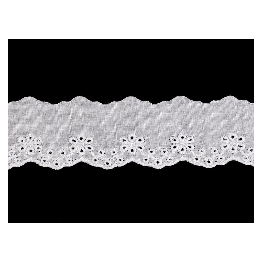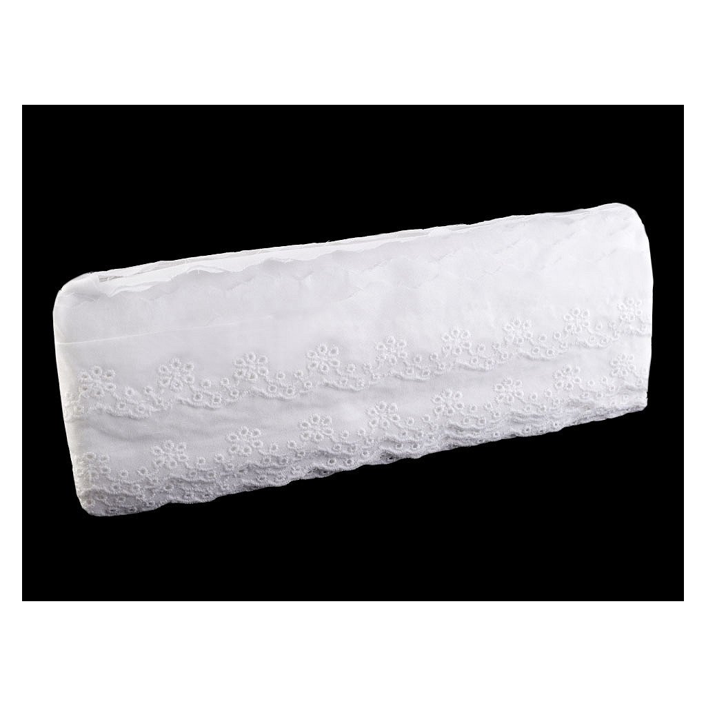 Bavlněná madeira je zdobena dírkovanou výšivkou s květy a lemovanými okraji.