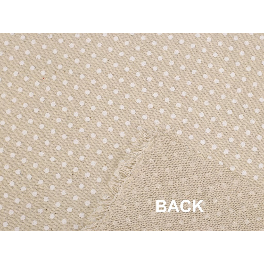 Bavlněnou látku zdobí potisk puntíků. Svou plátnovou vazbou připomíná len. Je hrubší, pevná, vhodná na šití ubrusů, běhounů, prostírání, dekoračních polštářů, dětských teepee apod.