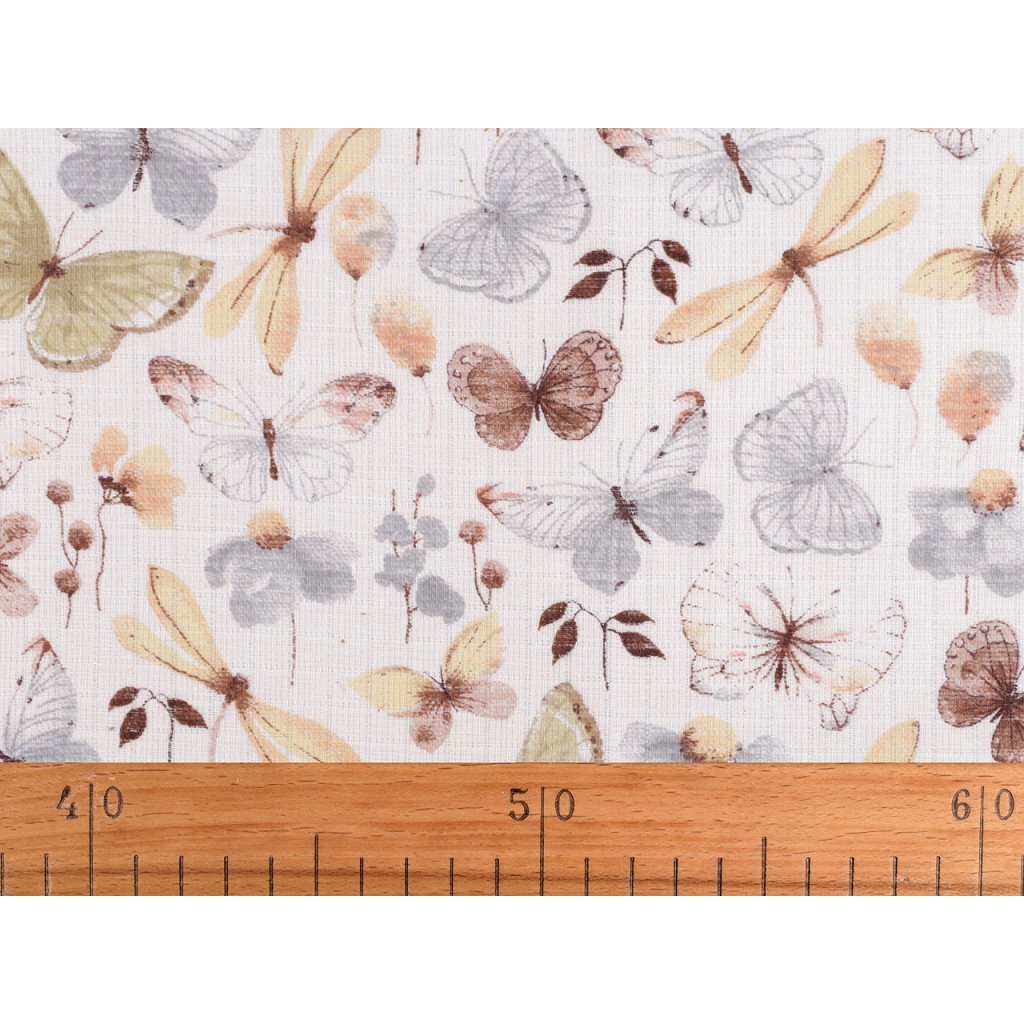 Bavlněnou plenkovinu s potiskem motýlů využijete na šití plenek, baldachýnů, bryndáčků apod. Je prodyšná, příjemná na dotek.
