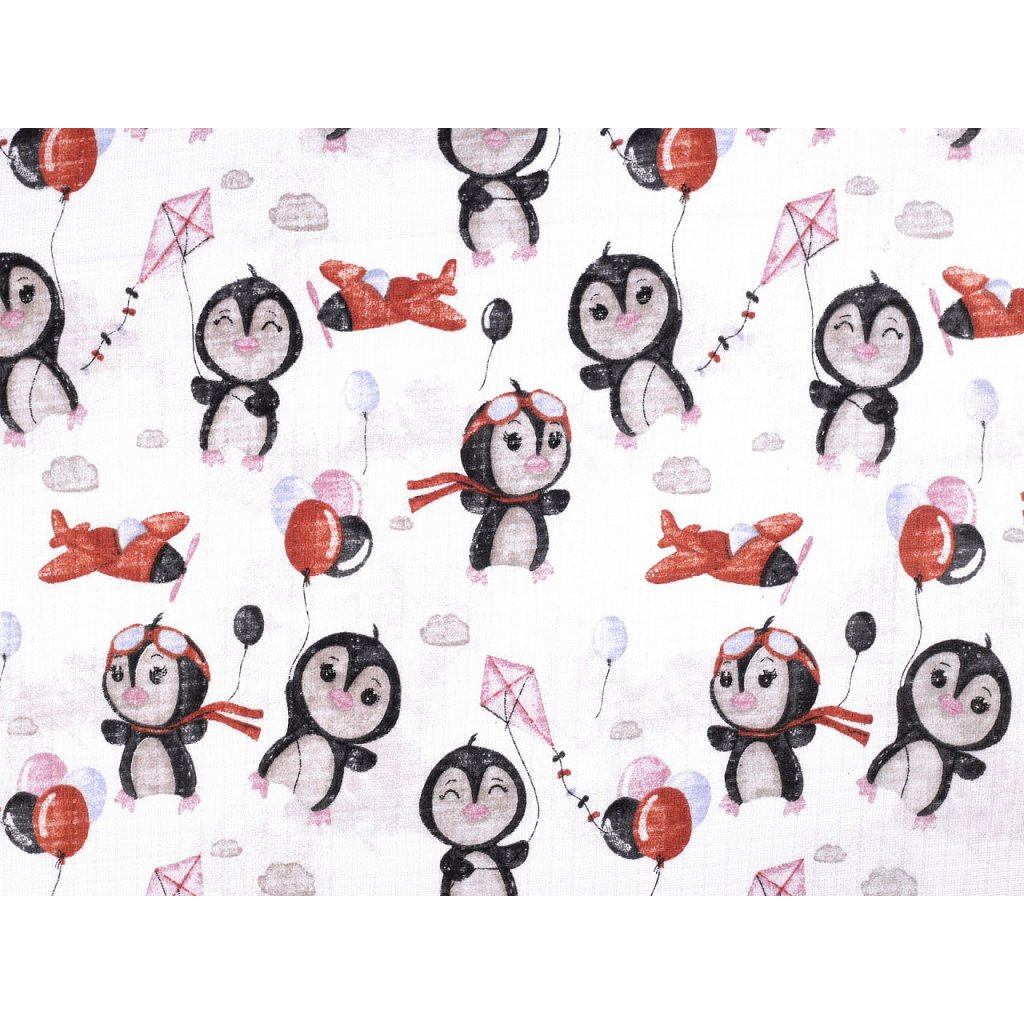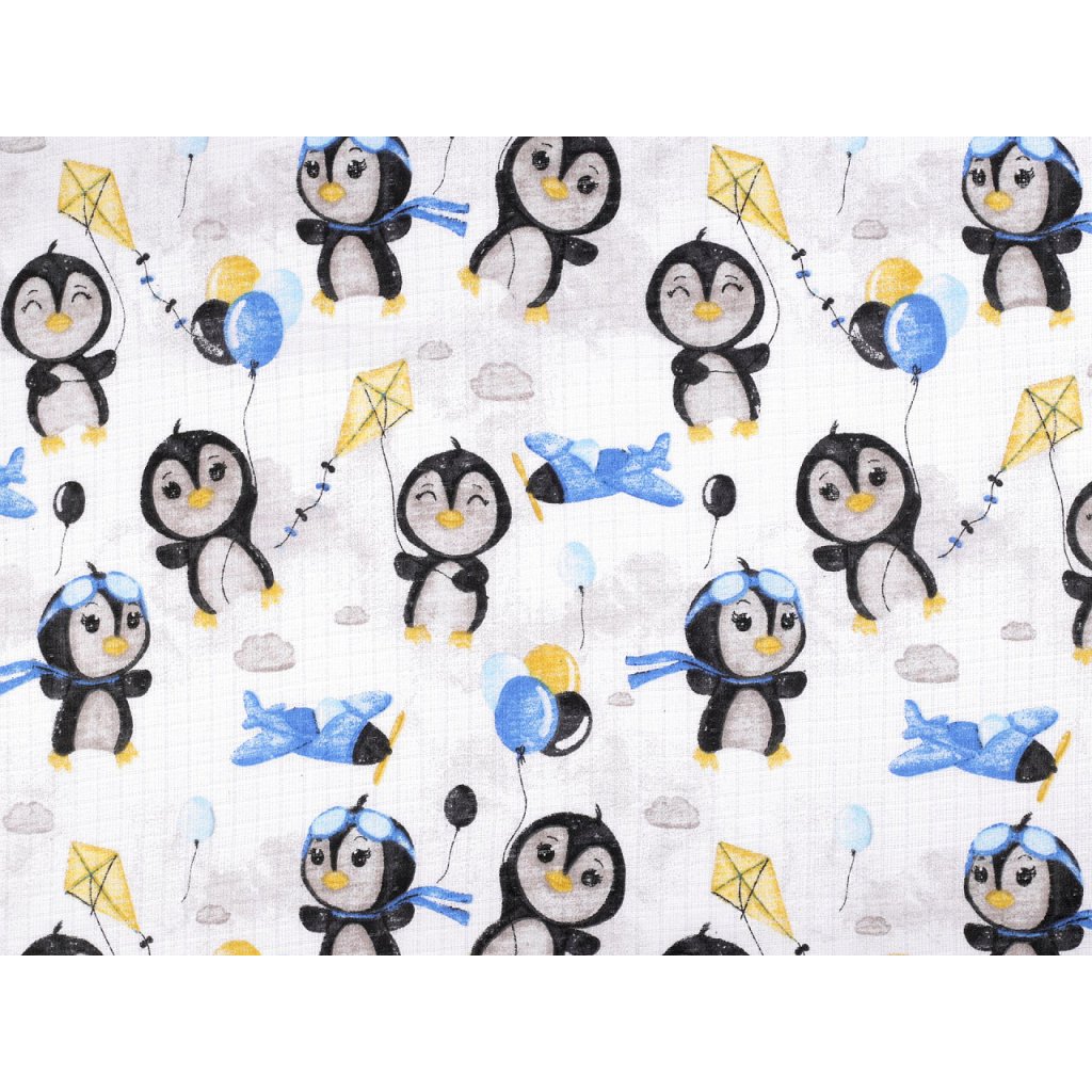 Bavlněnou plenkovinu zdobí obrázky roztomilých tučňáků. Využijete ji na šití plenek, baldachýnů, bryndáčků apod. Je vzdušná a příjemná na dotek.