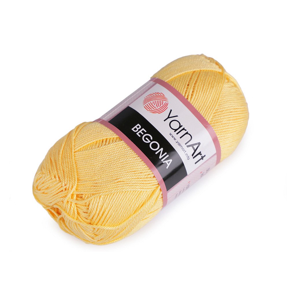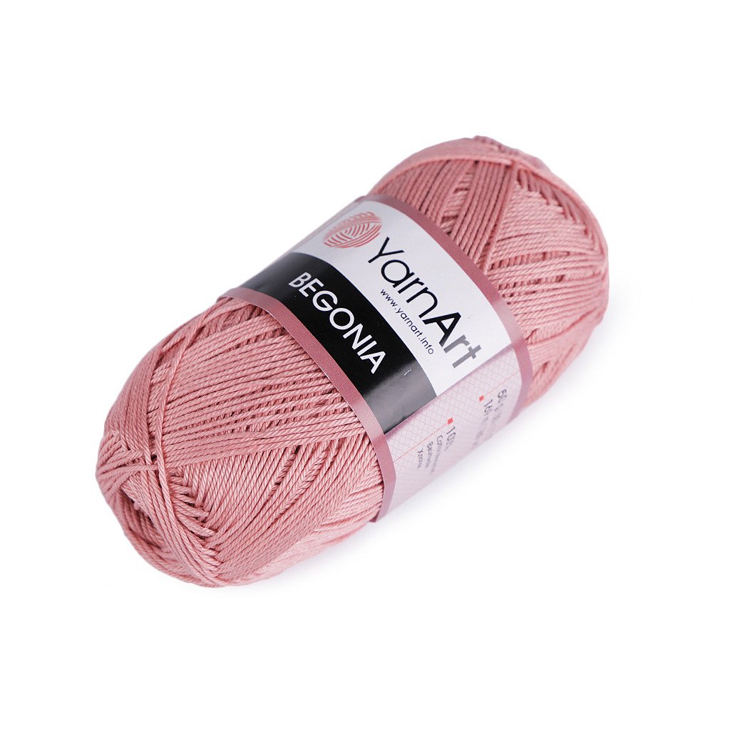 Pletací příze Begonia je vyrobená z mercerované bavlny. Mezi její výhody patří, že je na dotek jemnější, lesklejší a stálobarevná. Využijete ji na pletení či háčkování dekorací, hraček, zvířátek, ponožek, svetříků, dětských doplňků i oděvů apod.