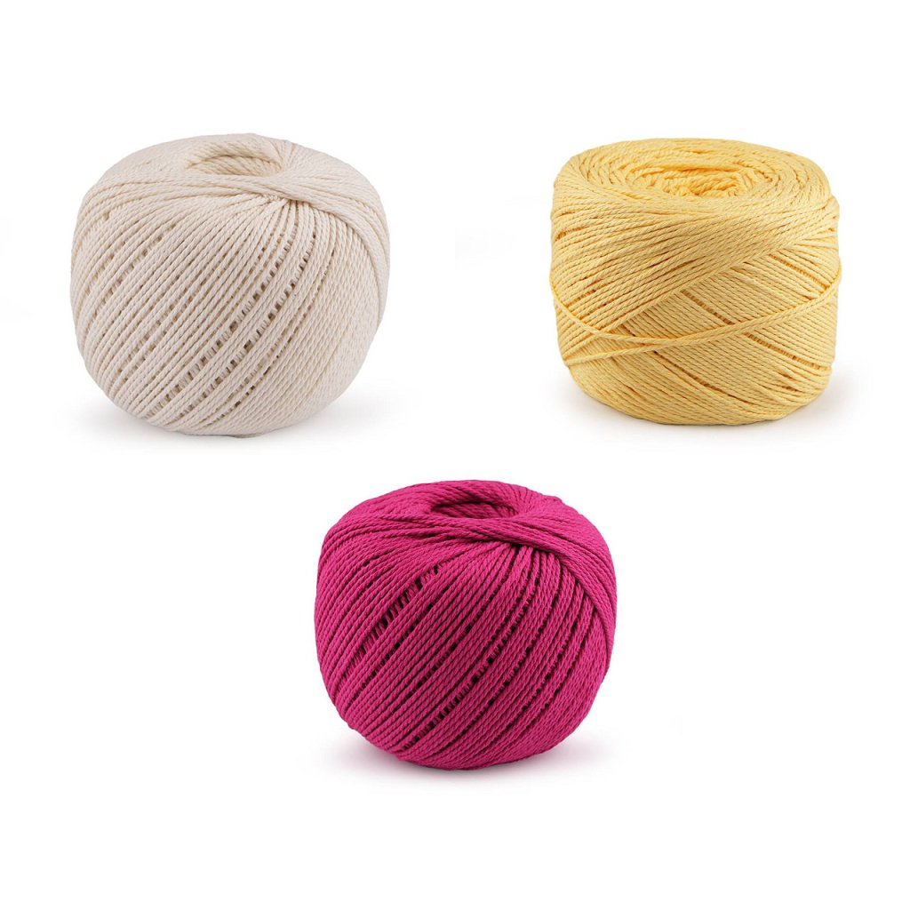 Splétaná šňůra je pevná, spletená ze 3 pramenů, ve kterých je celkem 21 tenčích nití. Využijete ji na výrobu drhaných (macrame) výrobků i na háčkování tašek, košíků a různých dekorací.