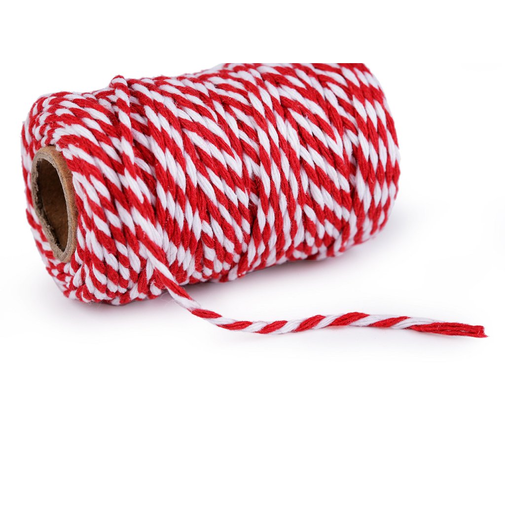Bavlněná dvoubarevná šňůra je velice pevná, spletená z 10 tenkých nití. Využijete ji k výrobě různých dekorací, k balení dárků, k ozdobení a vázání listin či zápisů apod.