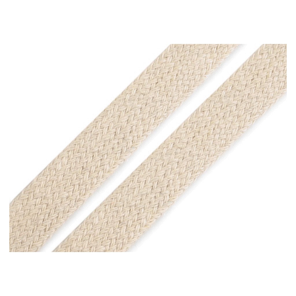 Přírodní plochá šnůra ze 100% bavlny je vhodná pro výrobu konfekce. Má tvar ploché dutinky, je pevná a odolná.