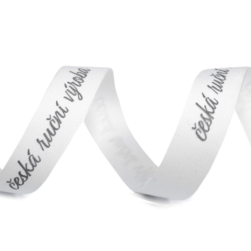 Použití: Stuhu využijete k našití jako štítky na ručně dělané výrobky, například tašky, šály apod. Je vhodná také na scrapbooking nebo balení dárků.