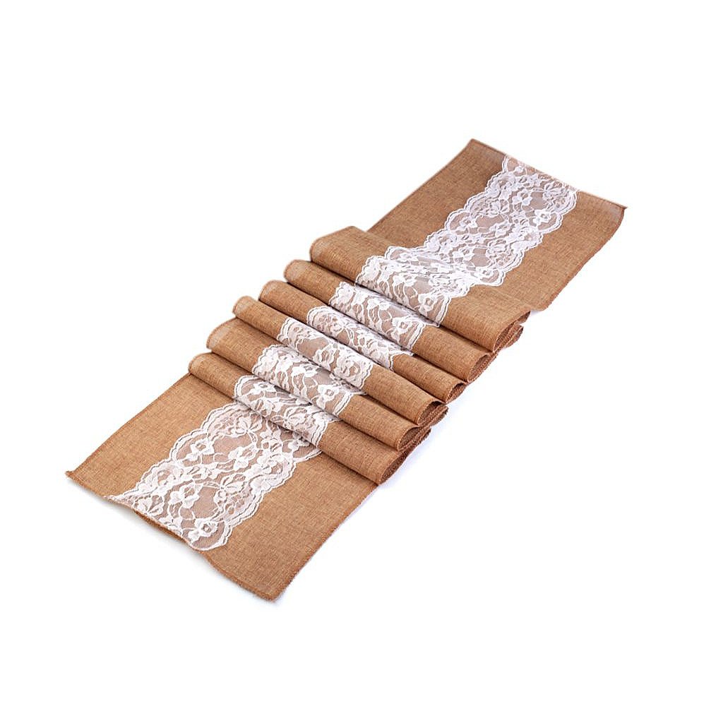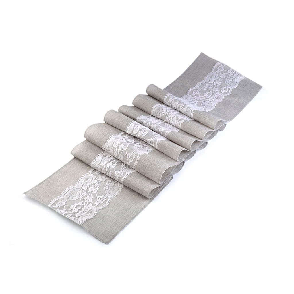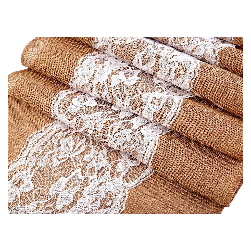 Vintage běhoun vám zútulní každý interiér. Připomíná jutu. Jeho střed zdobí romantická jemná krajka. Běhoun slouží k ozdobení středové části stolu. Mimo domov ho využijete i na svatbách a oslavách.