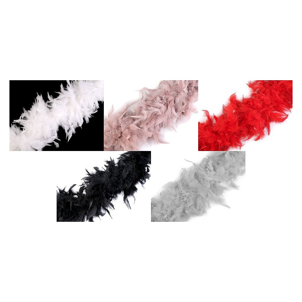 Boa je vyrobeno z pravého krůtího peří. Můžete si ho elegantně ovinout kolem krku nebo přehodit přes ramena. Převážně se využívá jako oděvní doplněk k šatům nebo karnevalovým kostýmům. Boa je z obou stran zakončeno očkem z provázků.