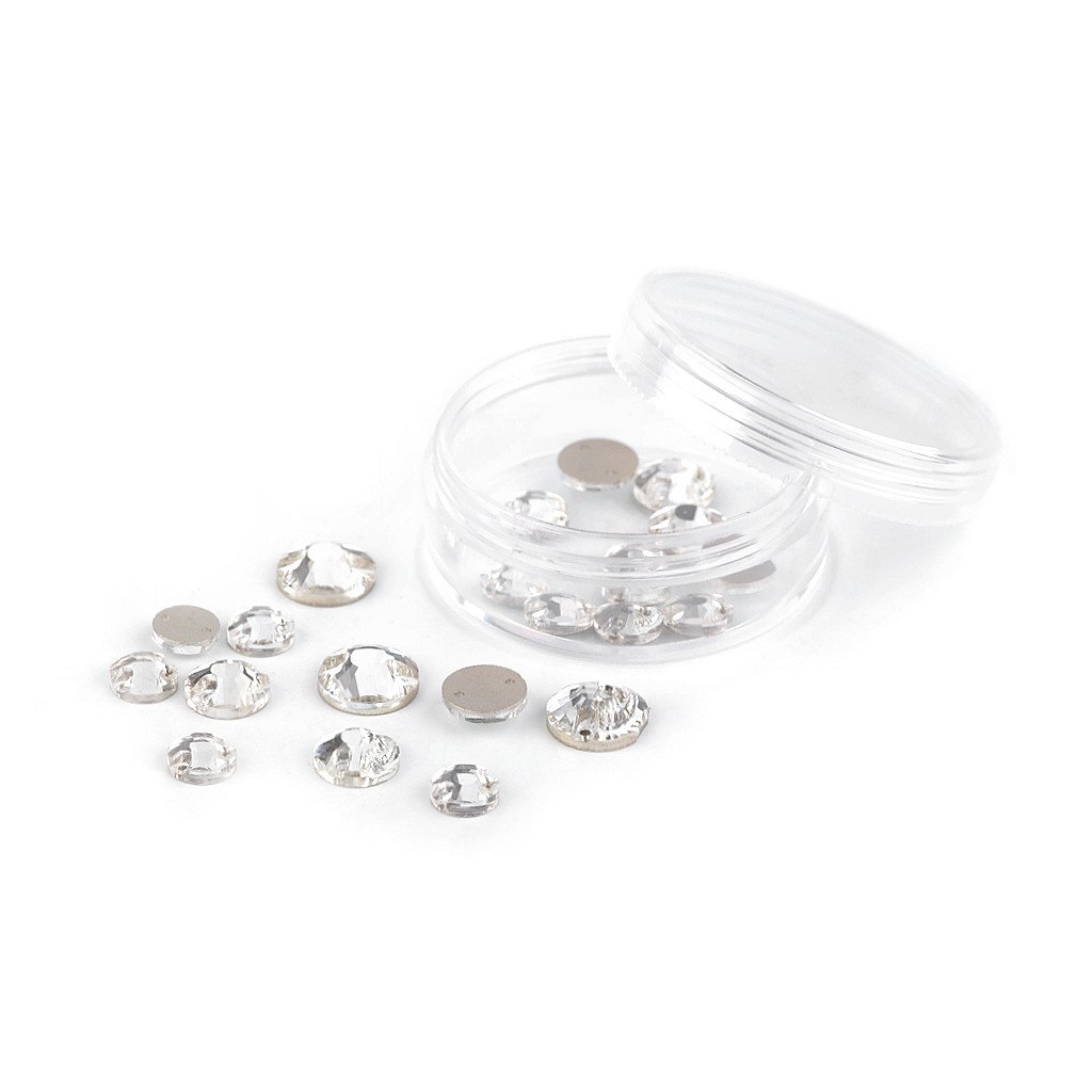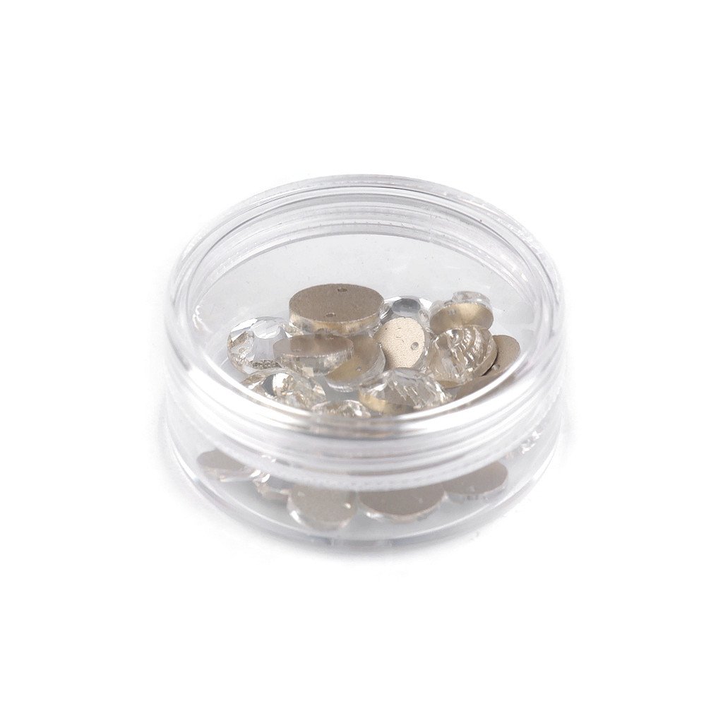 Mix kulatých, precizně broušených kamínků v dóze. Kamínky se efektně se třpytí. V každém jsou dva otvory, které umožňují snadné našívání. Na rubové straně jsou opatřeny krycí barvou, která zabraňuje zbarvení dle přiloženého podkladu. Využijete je při výrobě šitých šperků nebo zdobení oděvů. Dokonale vyniknou na společenských šatech, halenkách a doplňcích, jako jsou kabelky, psaníčka, klobouky apod.