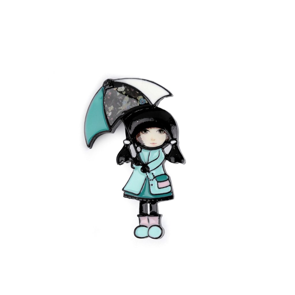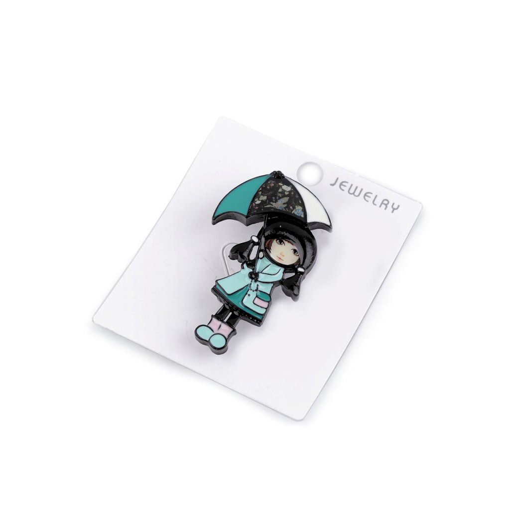 Brož holčičky s deštníkem je ozdobená barevným smaltem. Tento hravý kousek můžete využít na běžné nošení, je oblíbená i u dětí a slečen školou povinných. Můžete ji nosit na oděvech, kloboucích, taškách či s ní můžete ozdobně sepnout šátek. Na zadní straně má brožový špendlík.
