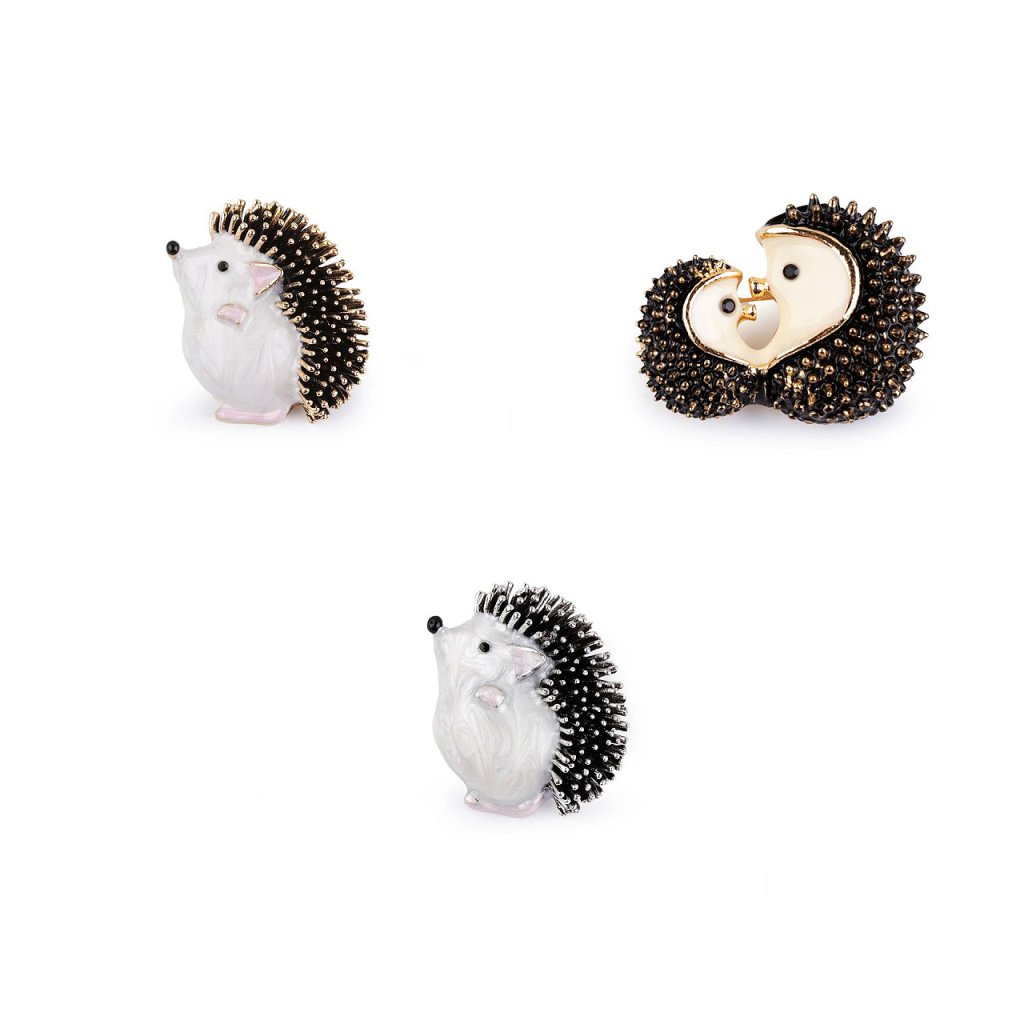 Brož ježka s barevným smaltem bude zajímavou ozdobou vašeho oděvu. Je perfektně zpracovaná s precizním zaměřením na detaily. Smalt má perleťový nádech, bodliny mají kovový lesk. Ze zadní strany je brožový špendlík.