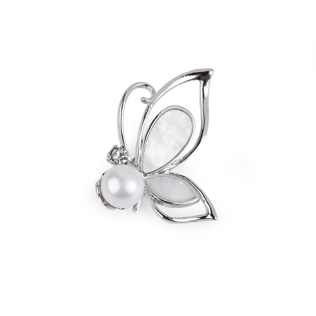 Brož motýla s perlou je elegantním doplňkem, který upoutá pozornost a přinese nádech luxusu do vašeho outfitu. Je skvělým doplňkem pro slavnostní události, jako jsou svatby či večírky, zároveň ji můžete nosit i v běžných dnech pro oživení vašeho každodenního stylu. Zapíná se pomocí brožového špendlíku.