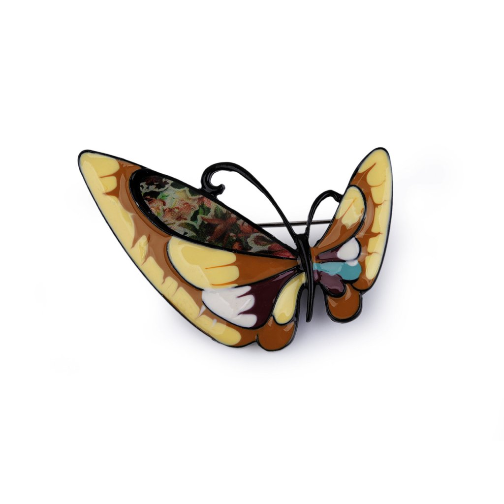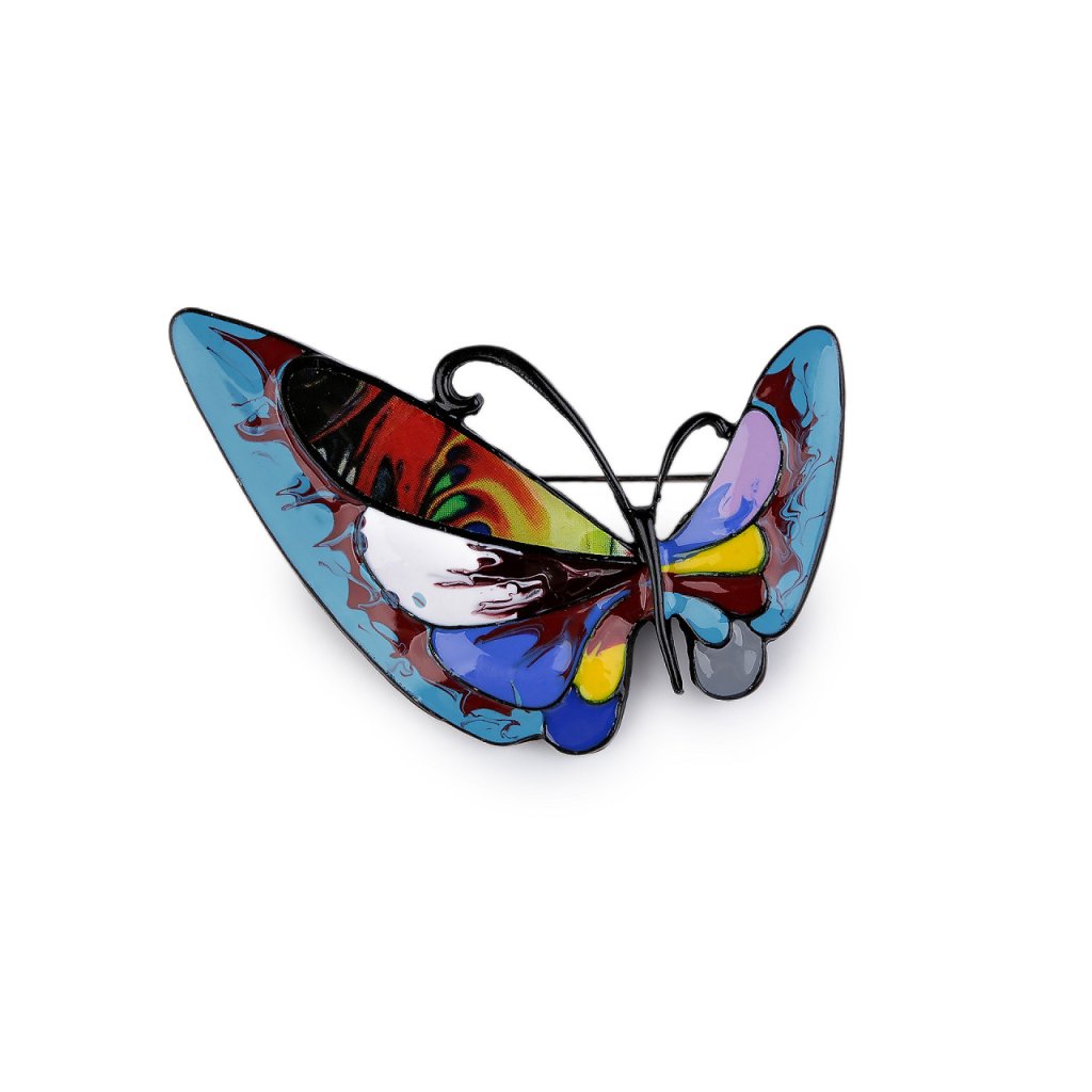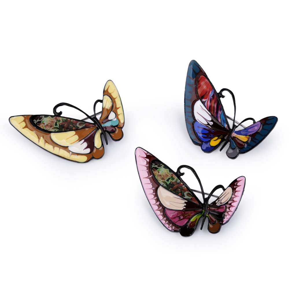 Brož motýla s barevným smaltem je elegantní a působivý doplněk, který dokáže oživit každý outfit. Je zpracována s důrazem na detail, což umocňuje její estetickou hodnotu. Z rubu má brožový špendlík. Můžete ji nosit nejen na oděvech, hodí se i k ozdobení klobouků, tašky či sepnutí šátku. Je skvělým dárkem pro každého, kdo ocení originální a hravé módní doplňky.