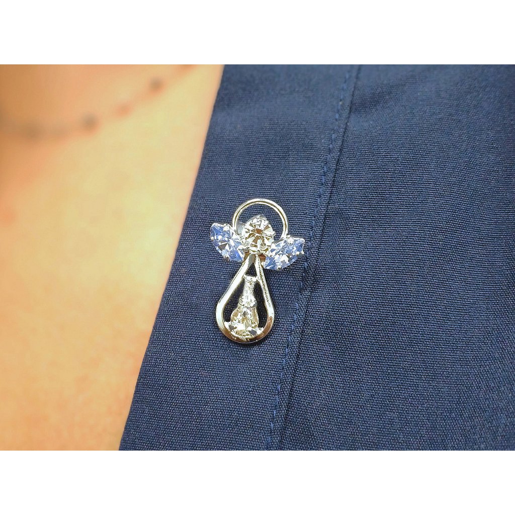 Brož / odznak štrasová vločka, anděl jablonecká bižuterie