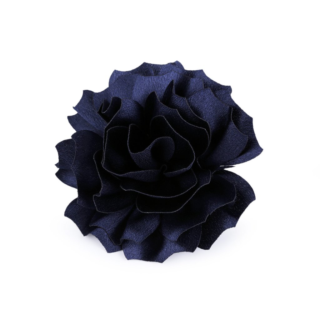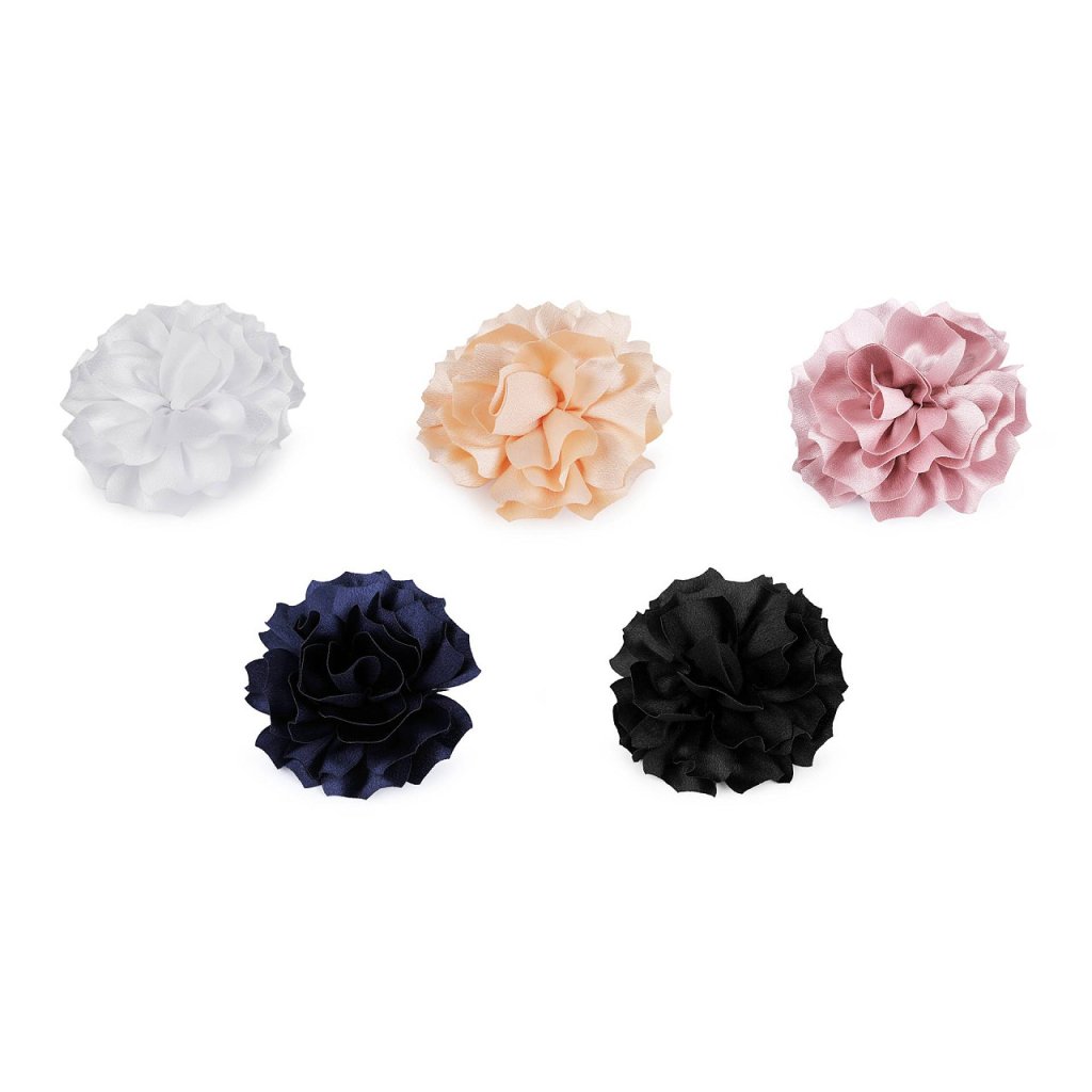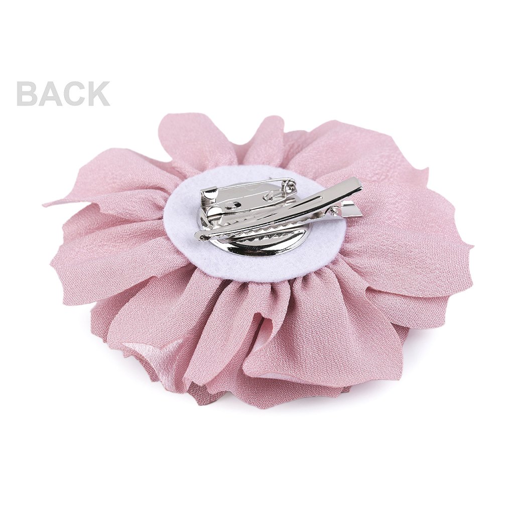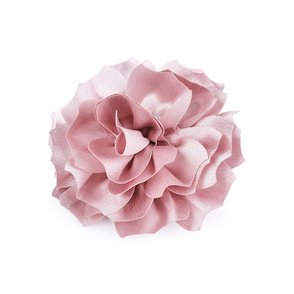 Brož saténového květu má bohatý 3D tvar. Ve spodní části má spínací špendlík a klips, takže ji můžete připevnit jak na oděv, tak do vlasů. Květ využijete jako ozdobu na šaty, halenku, sako nebo kabelku. Ve vlasech bude působit romanticky.