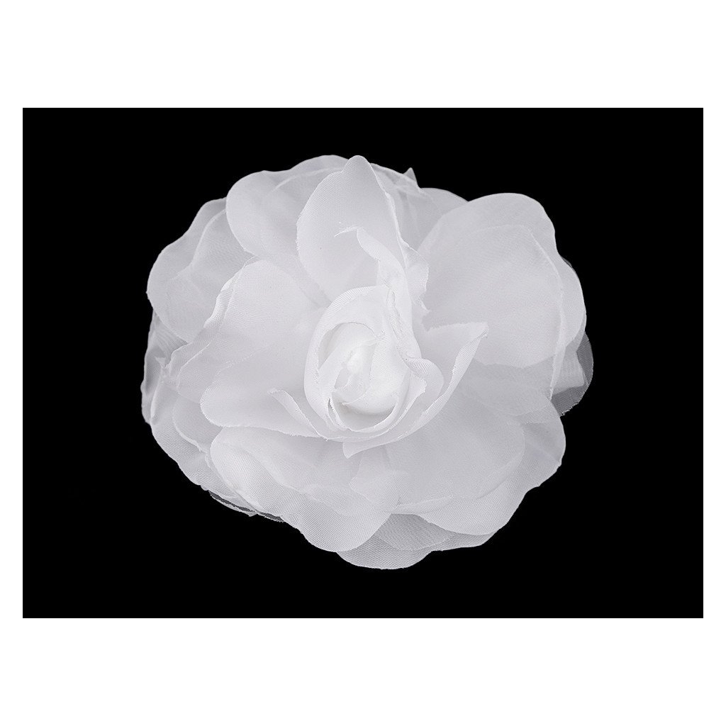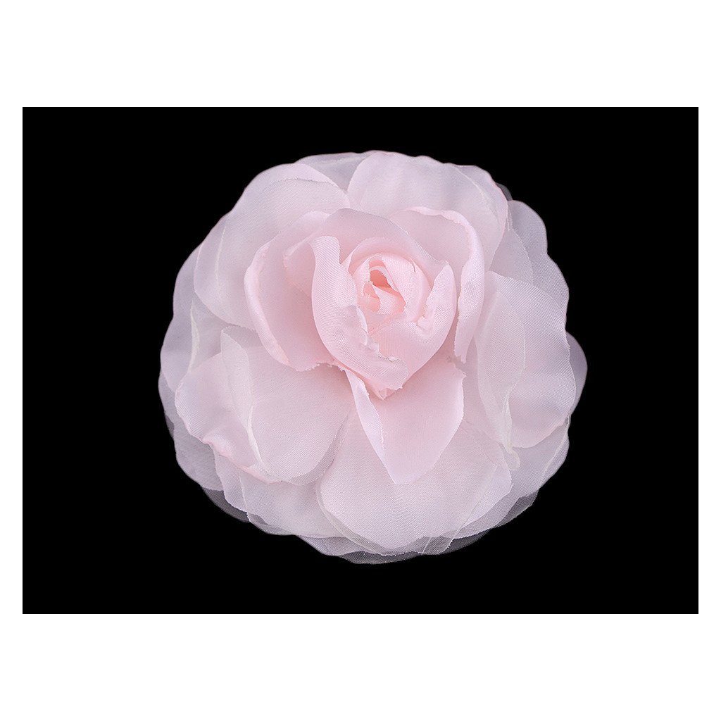 Brož ve tvaru růže je jemně nadýchaná, má krásný 3D tvar. Ve spodní části má spínací špendlík a klips, takže ji můžete připevnit jak na oděv, tak do vlasů. Brož využijete jako ozdobu na šaty, halenku, sako nebo kabelku. Ve vlasech bude působit romanticky.