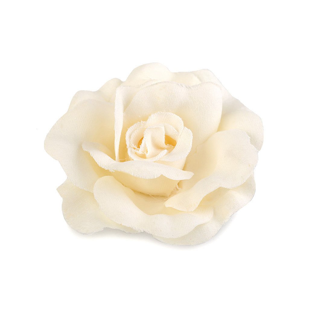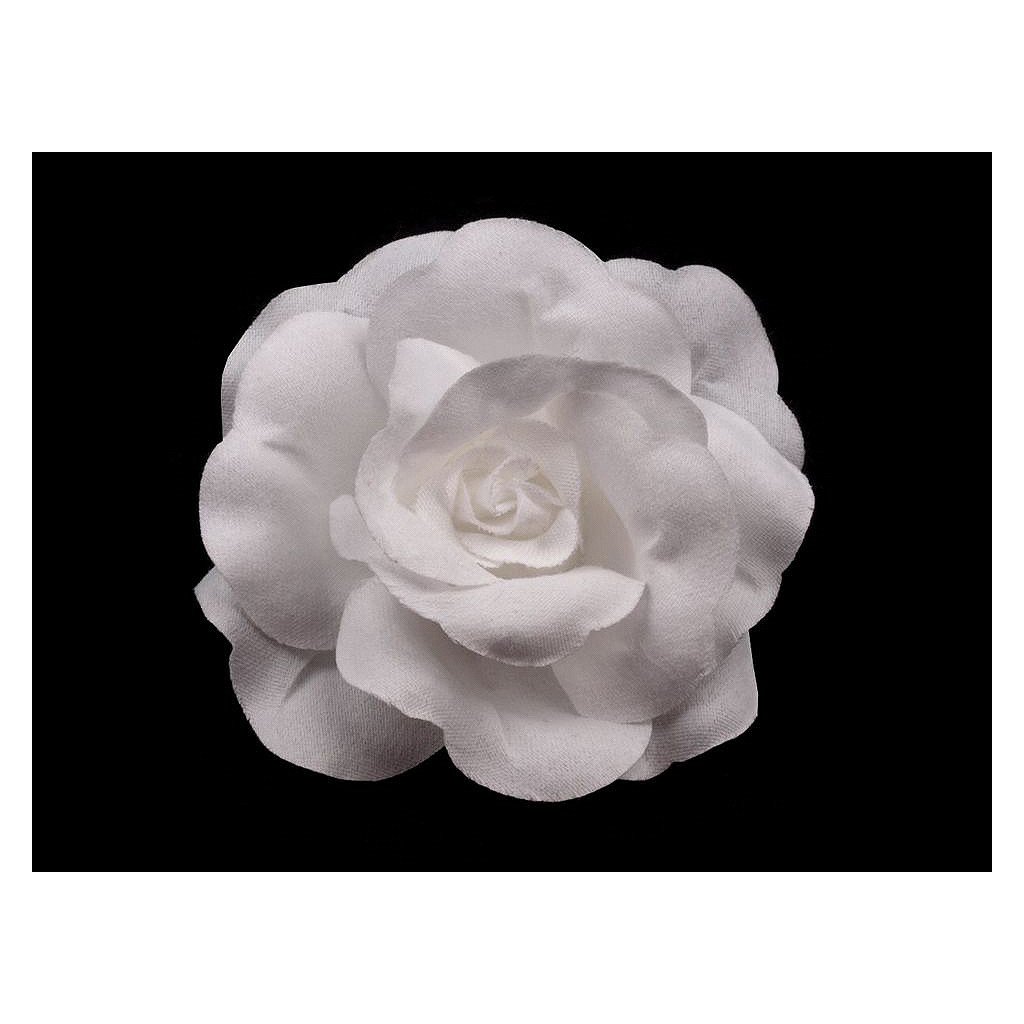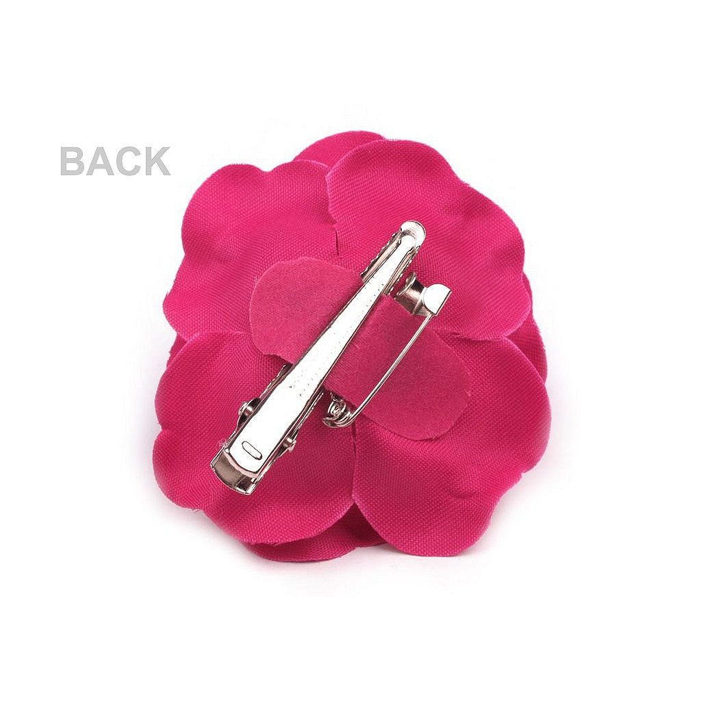 Květina je složena z drobných okvětních plátků, které vytvářejí plný květ. Z rubu růže naleznete sponu se zoubky, díky kterým bude ve vlasech perfektně držet. Dále zde také naleznete spínací špendlík, kterým květ připnete na šaty, sako, atd. Ozdoba je ke sponce a špendlíku pevně přilepena. S tímto romantickým květem oslníte nejen muže, ale určitě připoutáte pozornost i žen.