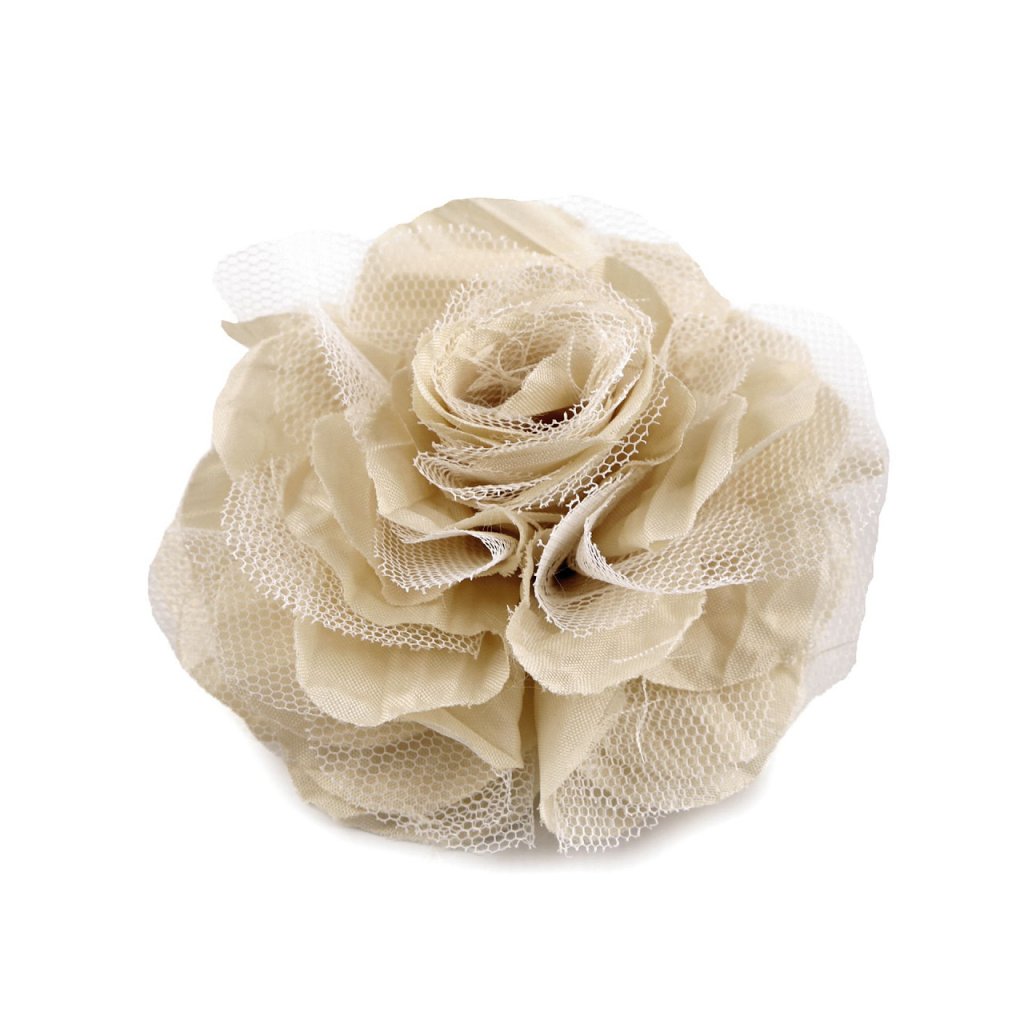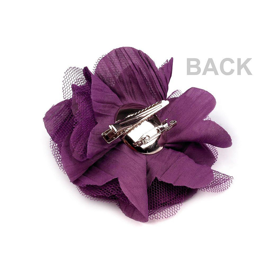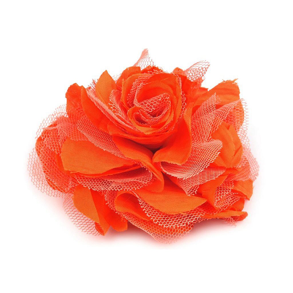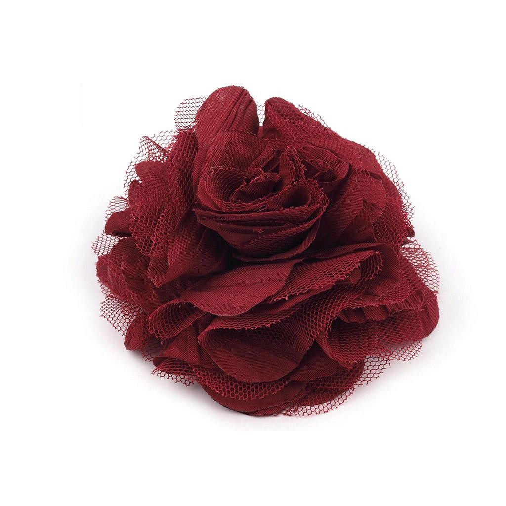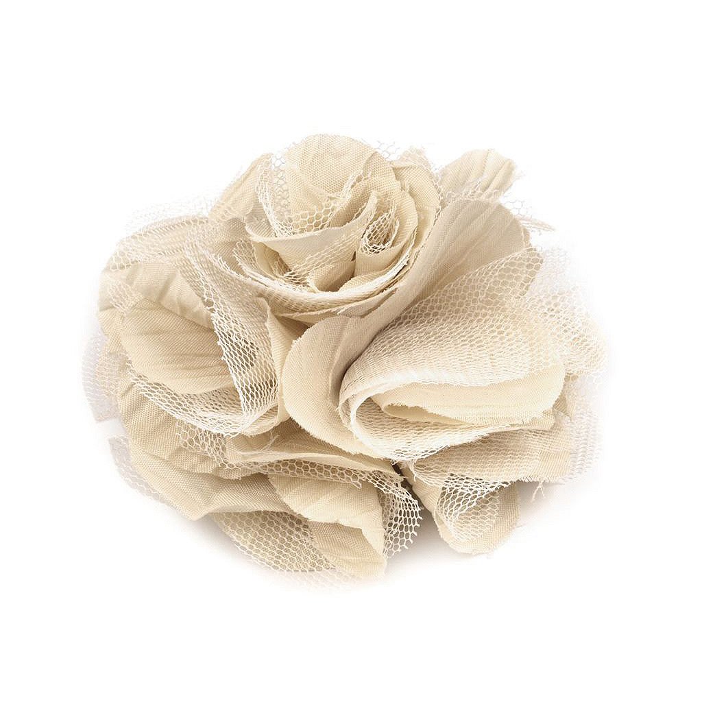 Brož ve tvaru růže je jemně nadýchaná a vyrobena z polyesteru. Ve spodní části má spínací špendlík a klips, takže ji můžete připevnit jak na oděv, tak do vlasů.Brož využijete jako ozdobu na šaty, halenku, sako nebo kabelku. Ve vlasech bude působit romanicky.