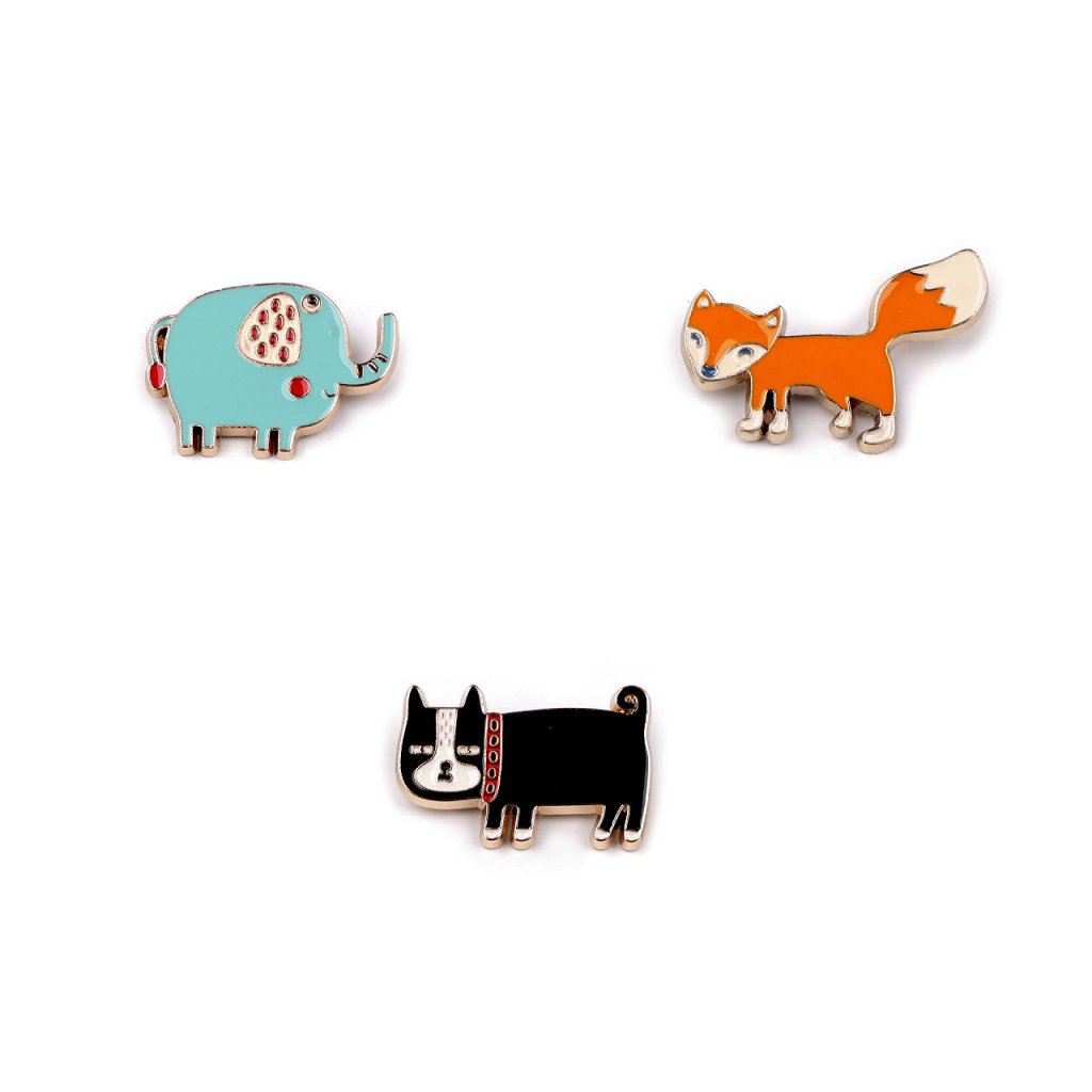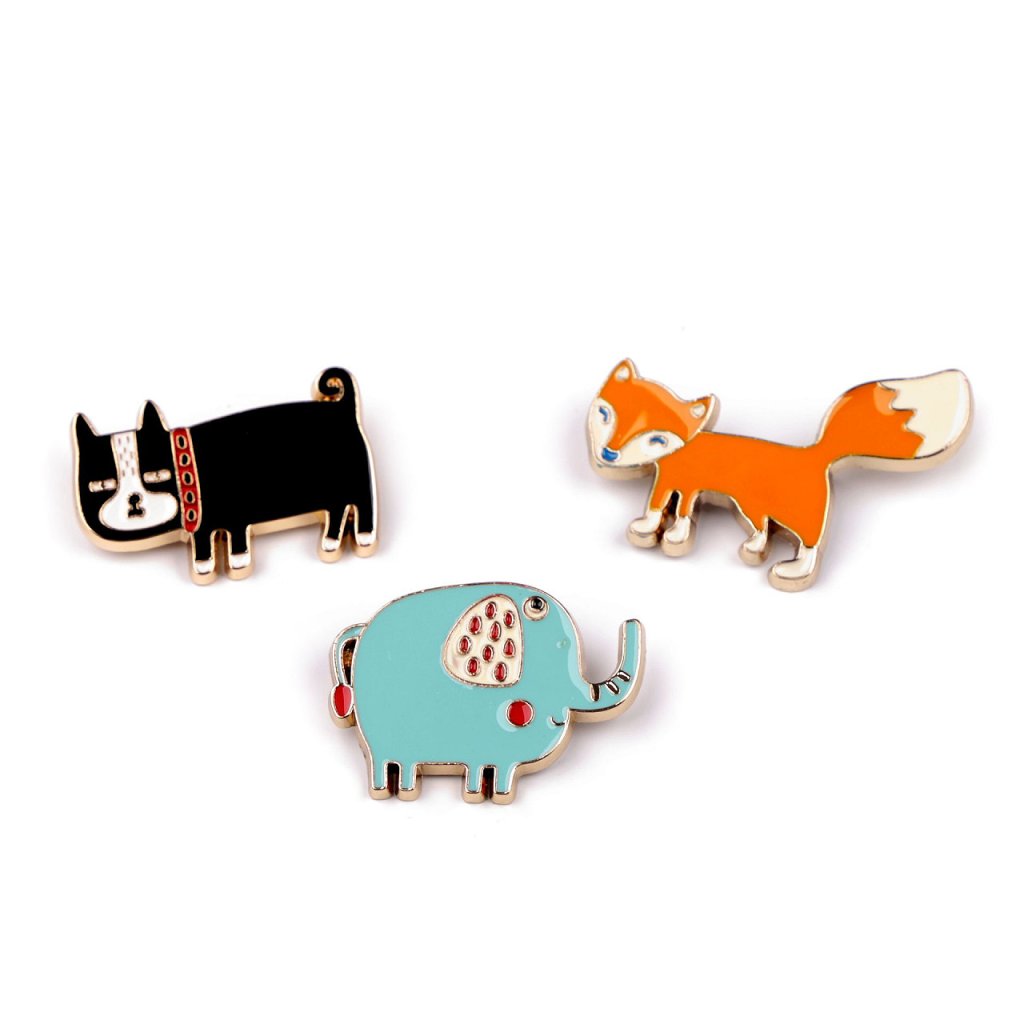 Kovové brože se zvířátky vám vesele oživí oděvy i doplňky (tašky, klobouky, batohy). Barevný smalt jim dodává hravost.