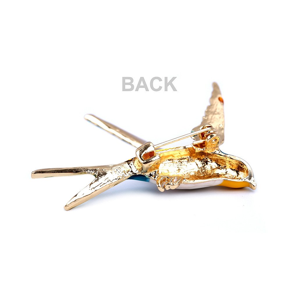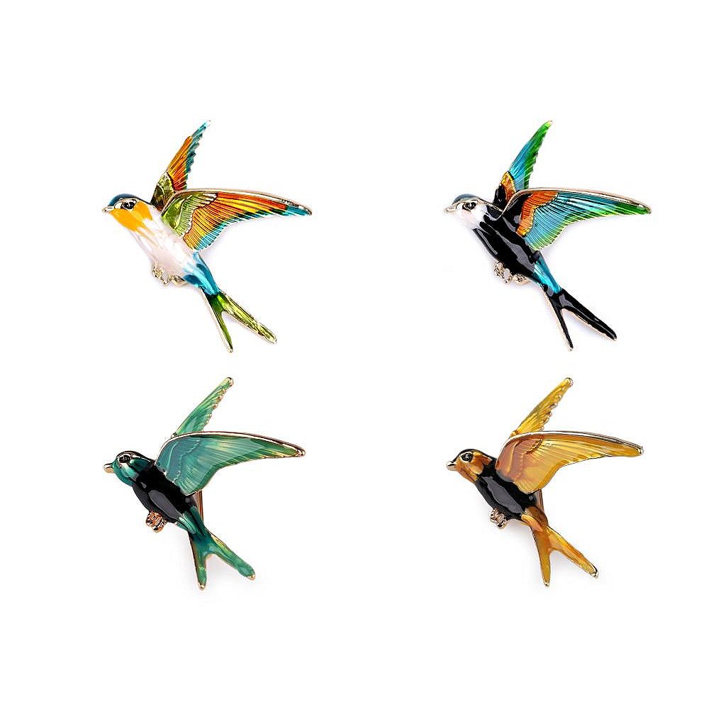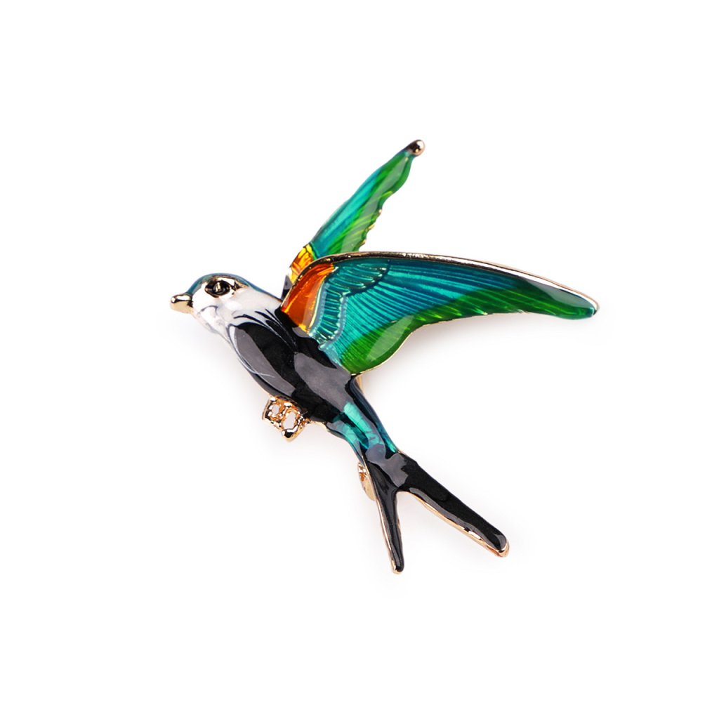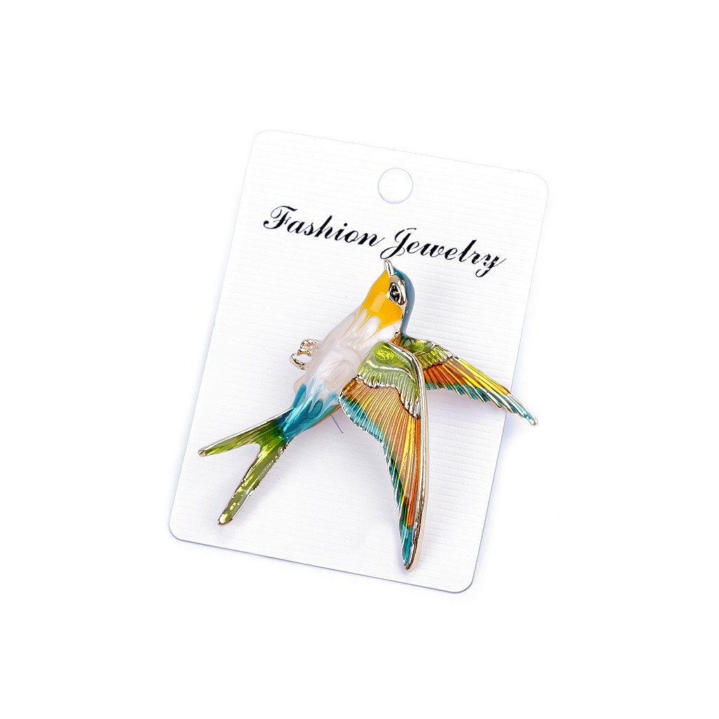Brož ptáček s barevným smaltem vás uchvátí svou duhovou hrou barev. Je velice elegantní, můžete ji využít na běžné nošení i na společenské události - návštěvy divadel, oslavy apod. Z rubu má brož zavírací špendlík. Můžete ji nosit nejen na oděvech, hodí se i k ozdobení klobouků, tašky či sepnutí šátku.